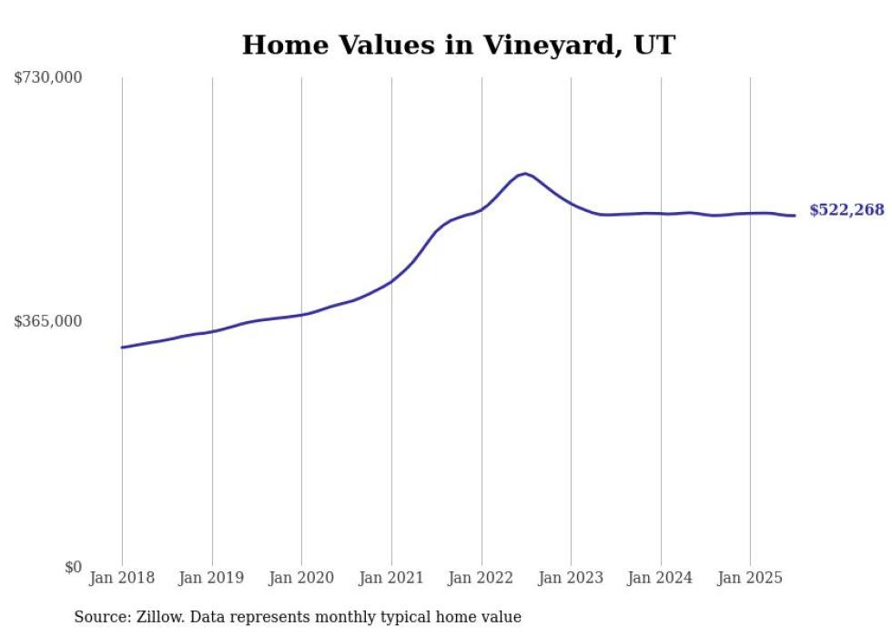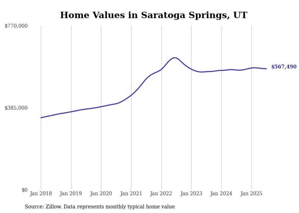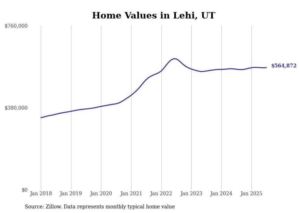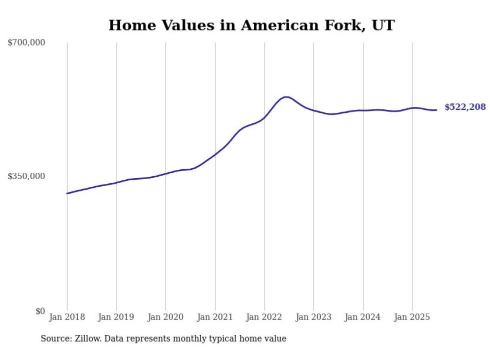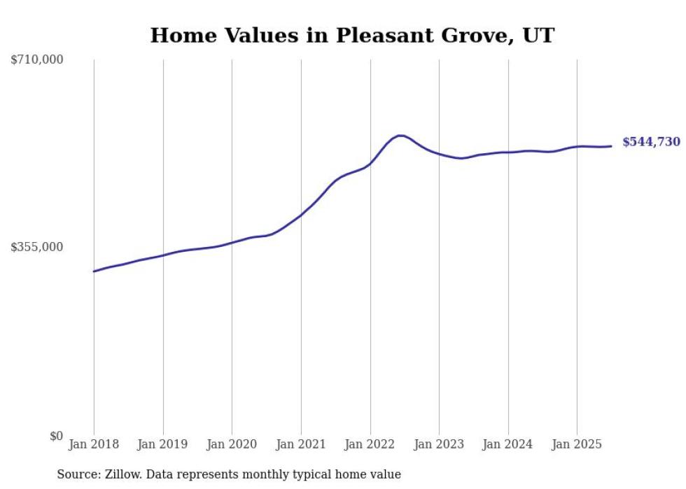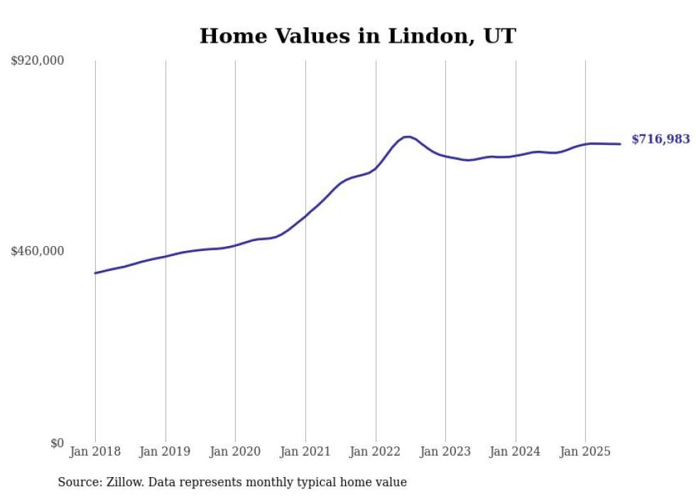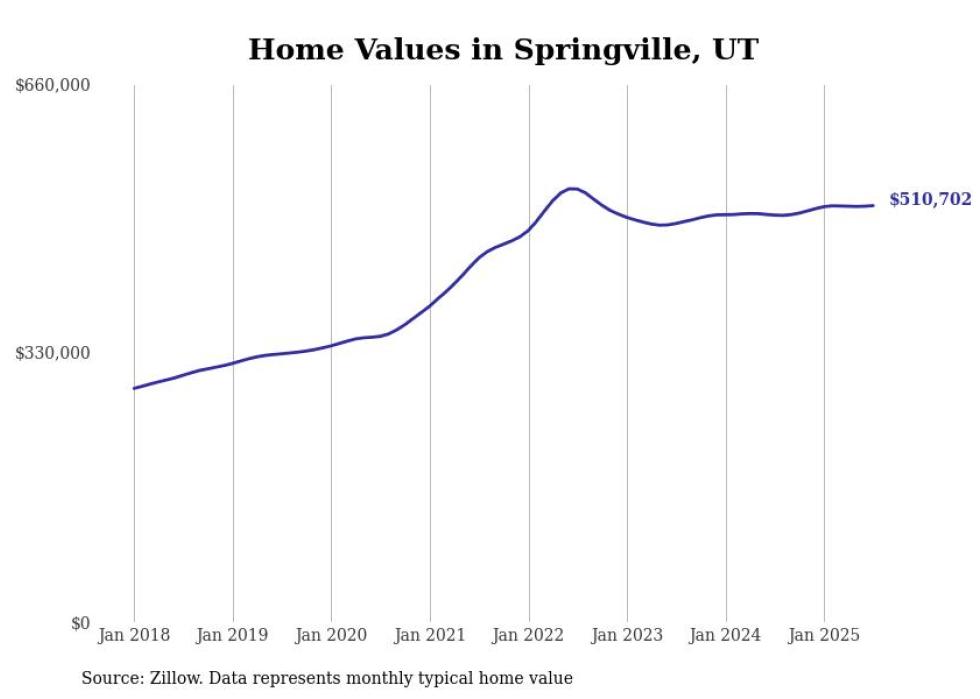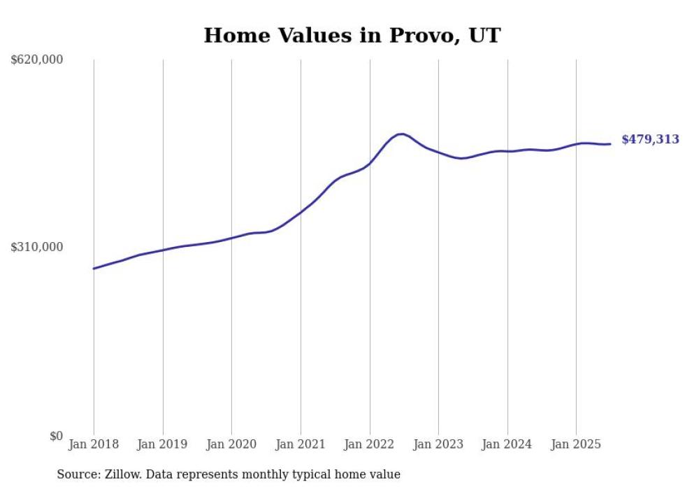Stacker compiled a list of cities with the most expensive homes in the Provo metro area using data from Zillow. Charts show the monthly typical home value since January 2018. All 26 cities and towns with data available were included in the list.