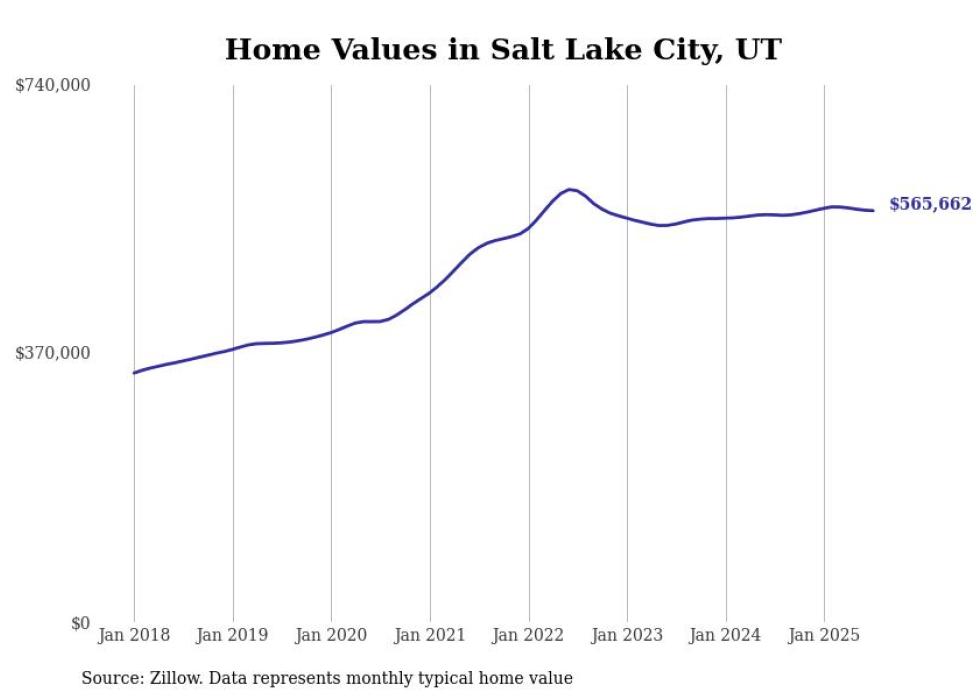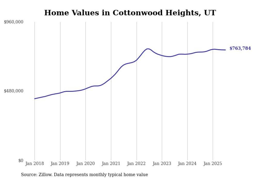 Stacker compiled a list of cities with the most expensive homes in the Salt Lake City metro area using data from Zillow. Charts show the monthly typical home value since January 2018. All 28 cities and towns with data available were included in the list.