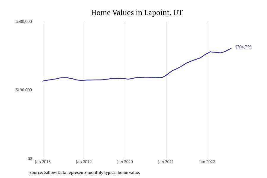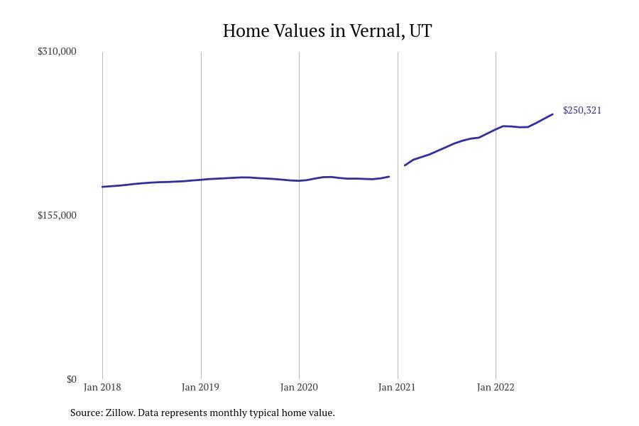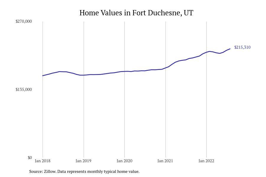 Stacker compiled a list of places with the most expensive homes in Uintah County, UT using data from Zillow. Places are ranked by the Zillow Home Values Index for all homes as of August 2022. The ZVHI represents a seasonally adjusted price for the middle market for all homes. All 8 cities and towns with data available were included in the list. Charts for each place show the monthly typical home value since January 2018.