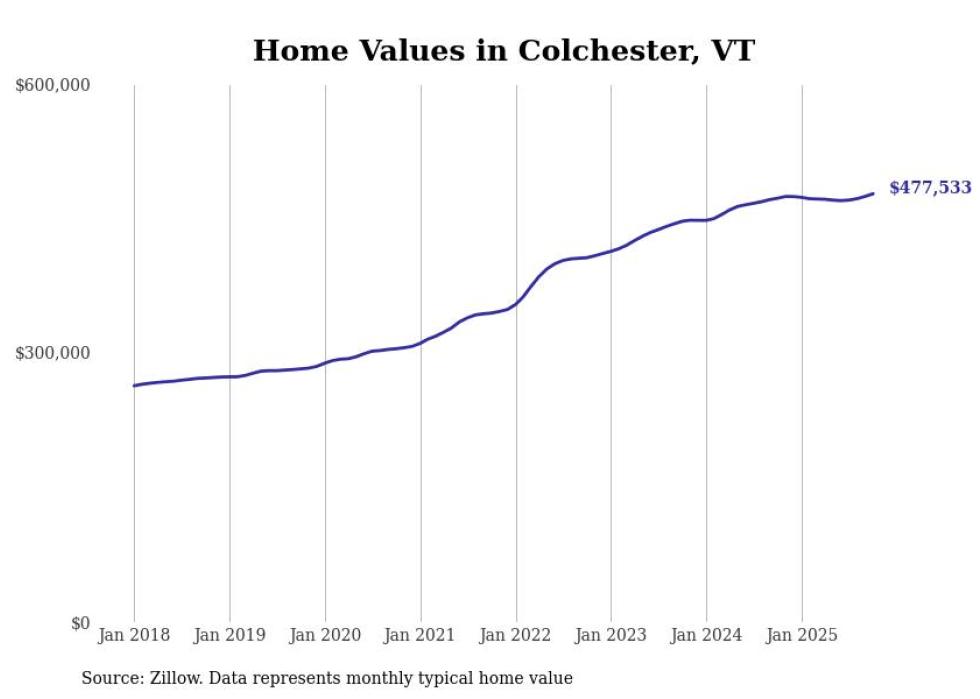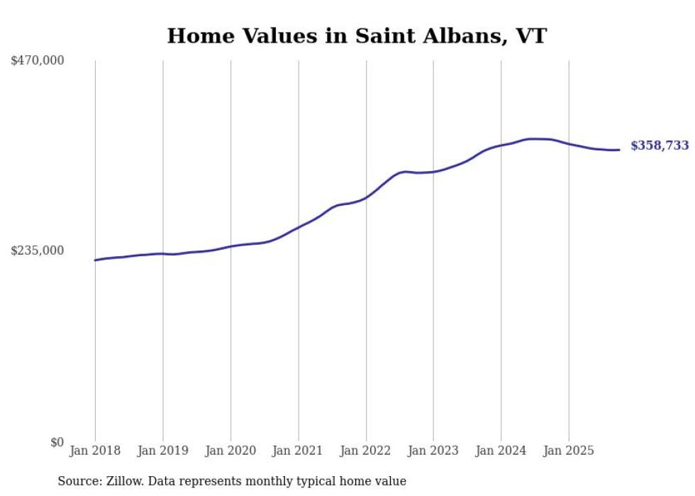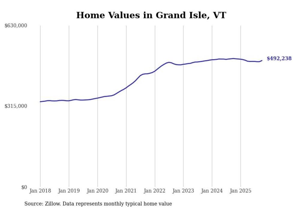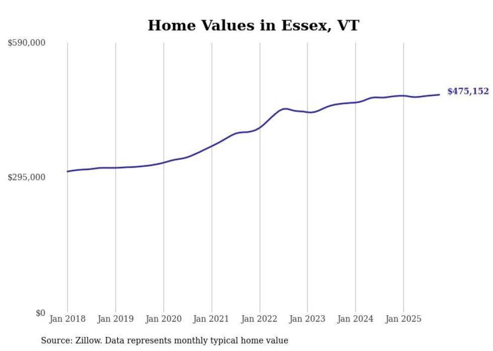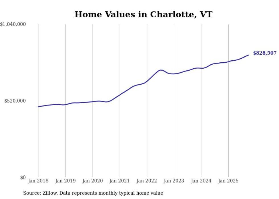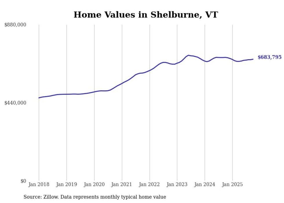 Stacker compiled a list of cities with the most expensive homes in the Burlington metro area using data from Zillow. Charts show the monthly typical home value since January 2018. Data was available for 36 cities and towns.