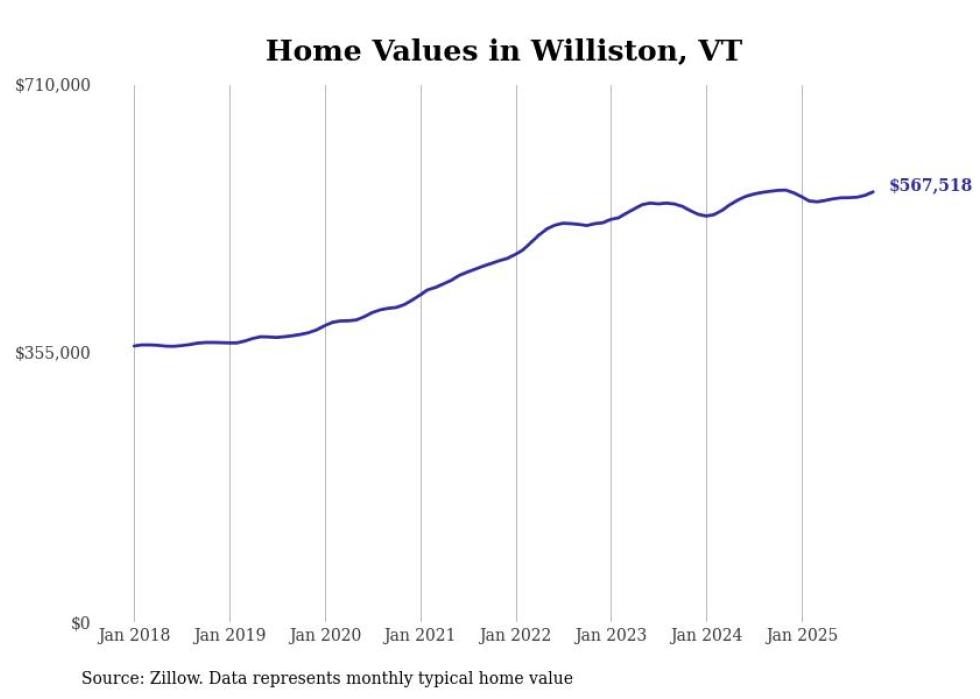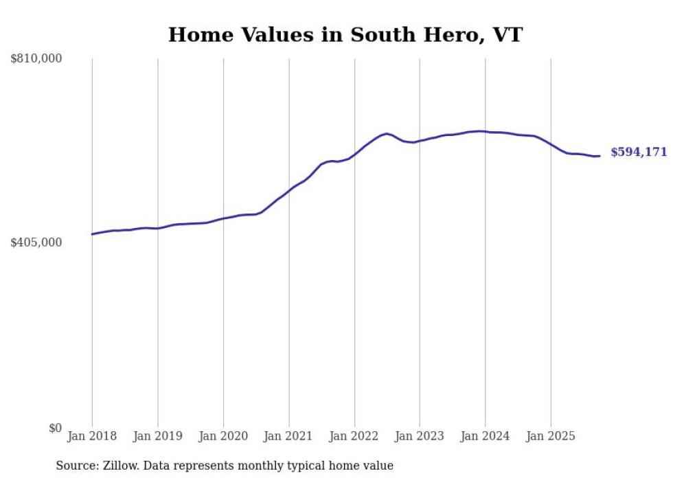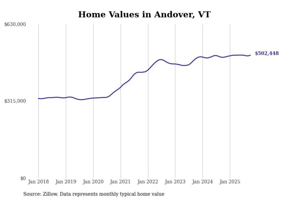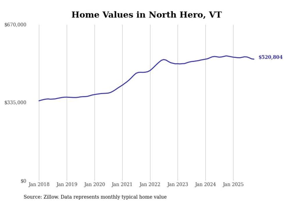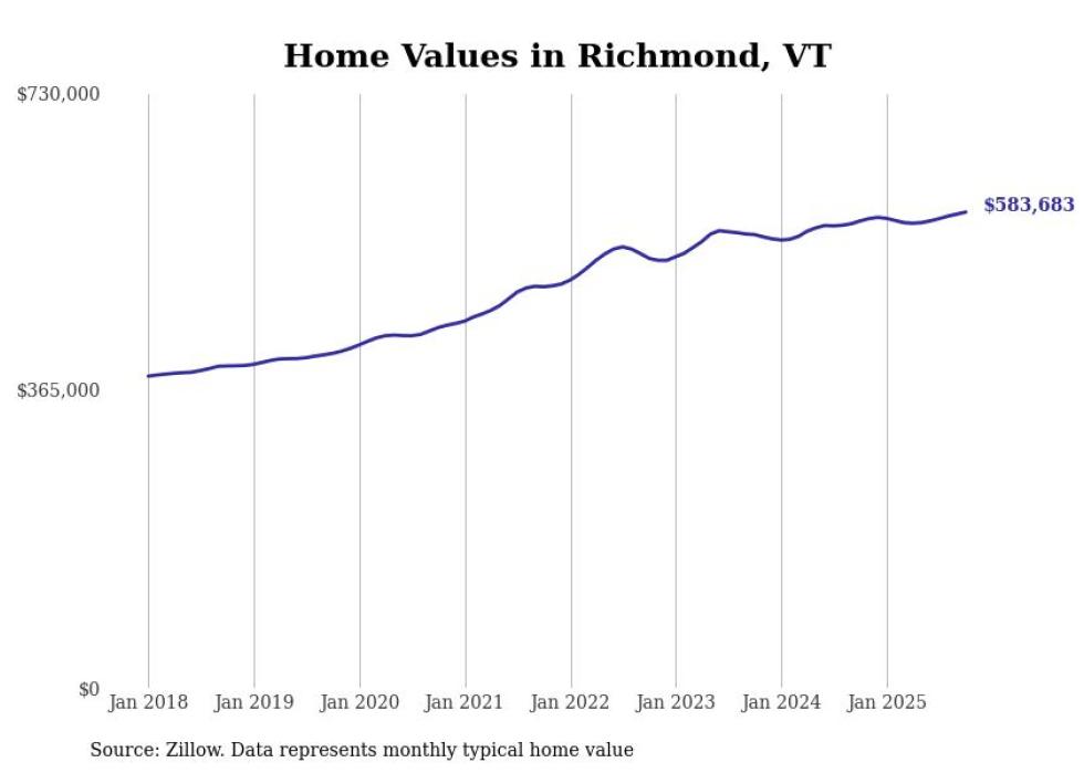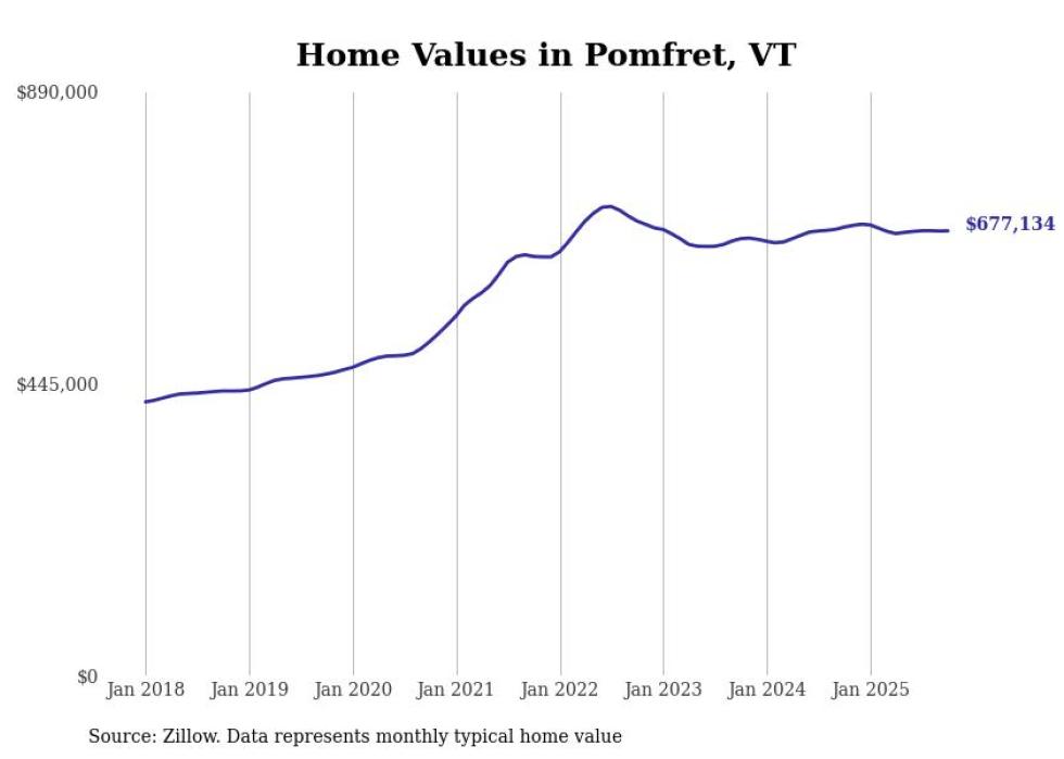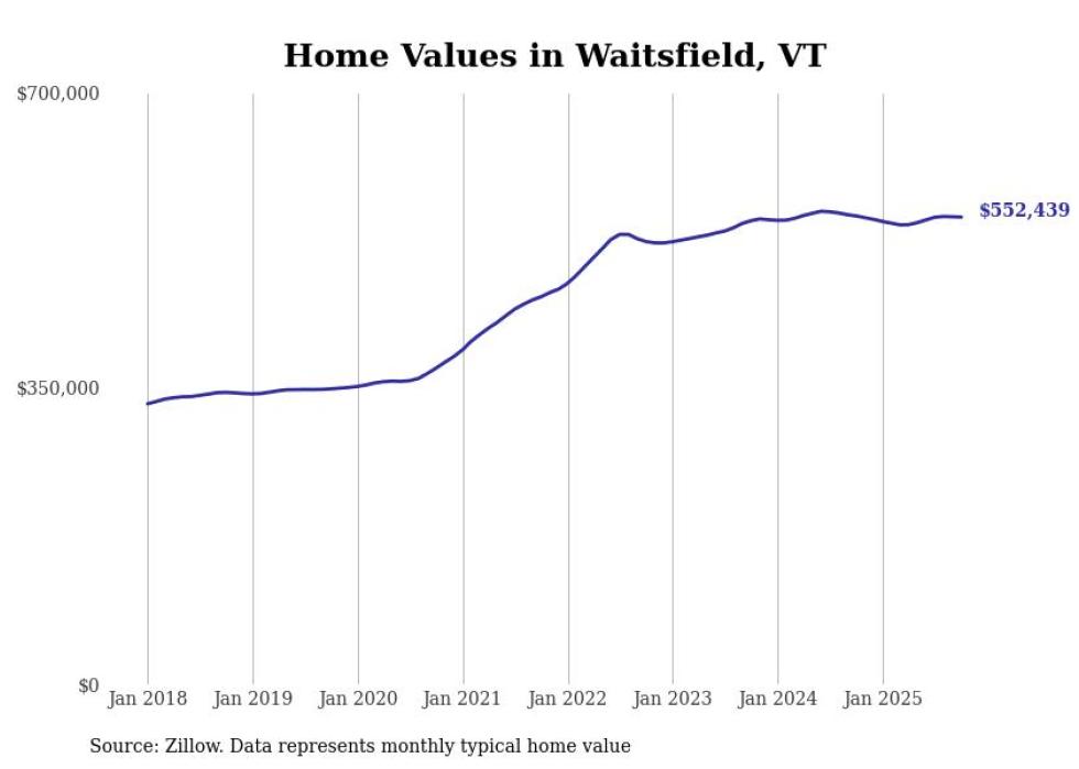 Stacker compiled a list of cities with the most expensive homes in Vermont using data from Zillow. Cities are ranked by the Zillow Home Values Index for all homes as of October 2025. The charts in this story were created automatically using Matplotlib.