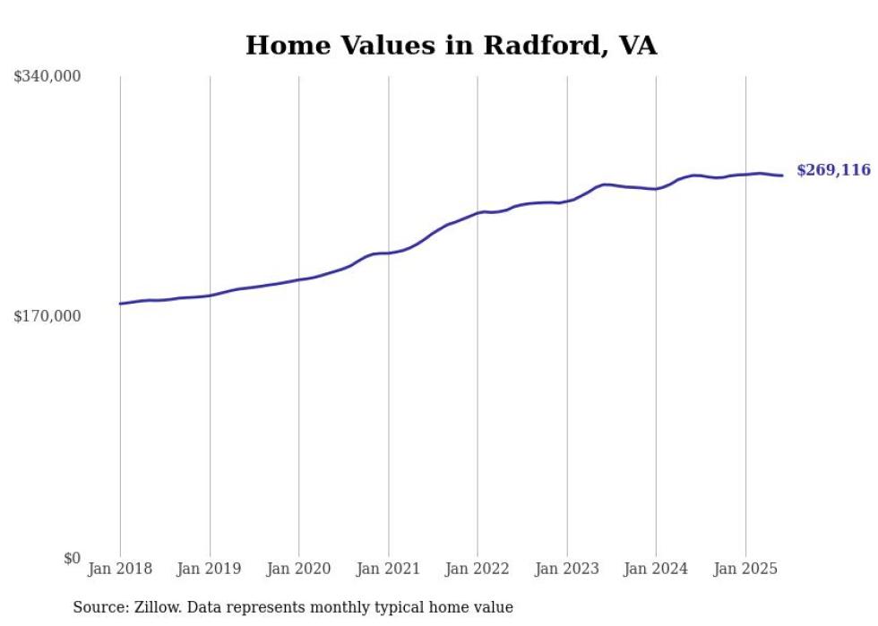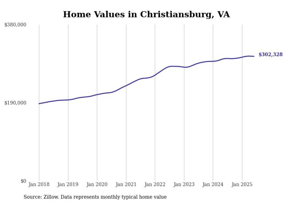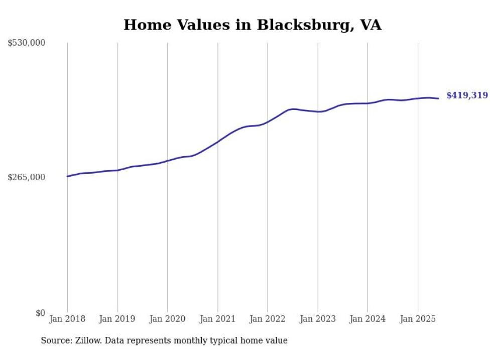Stacker compiled a list of cities with the most expensive homes in the Blacksburg-Christiansburg, VA metro area using data from Zillow. Charts show the monthly typical home value since January 2018.