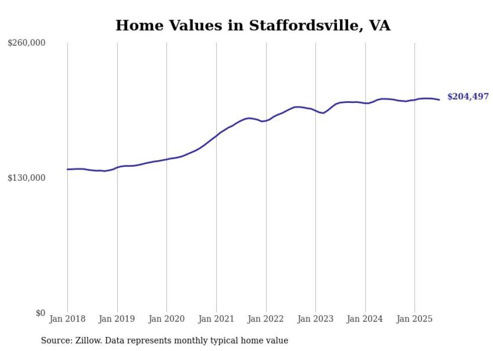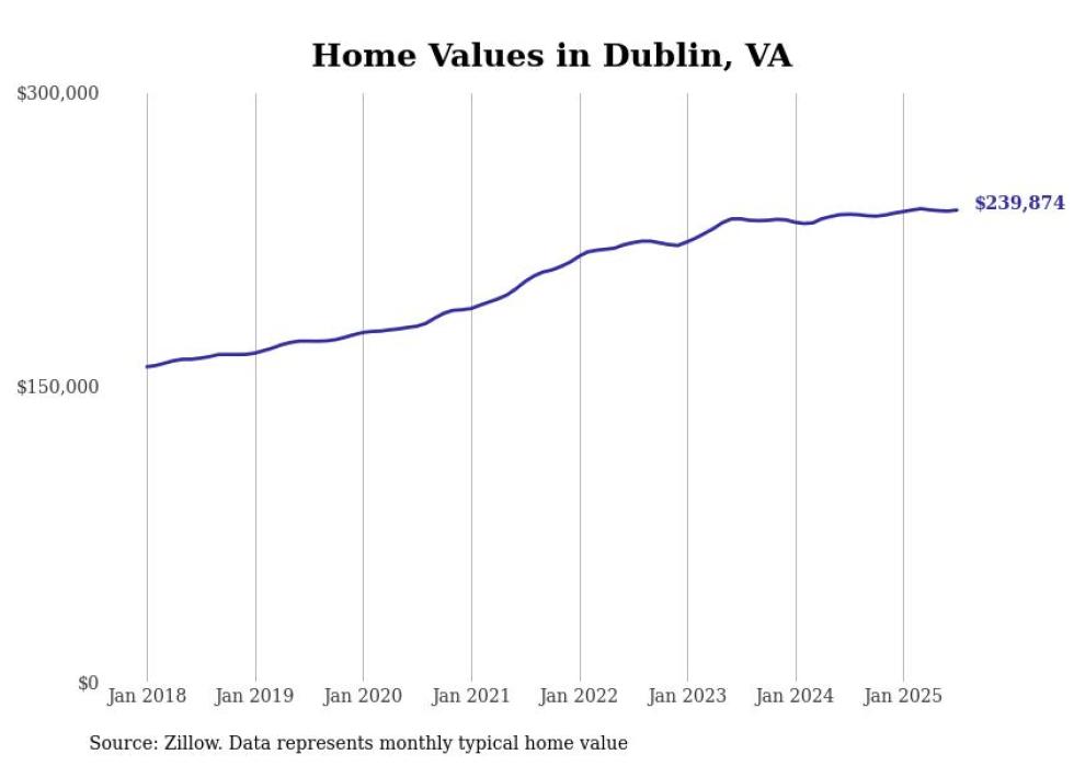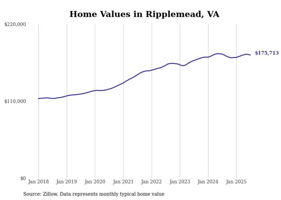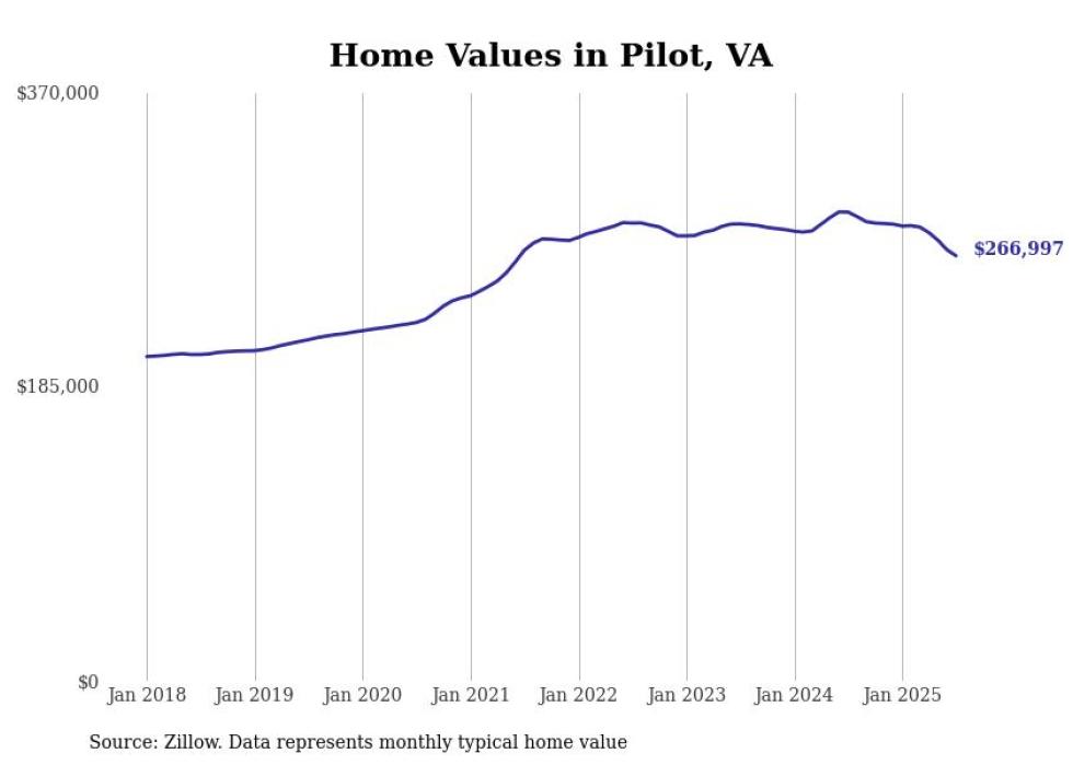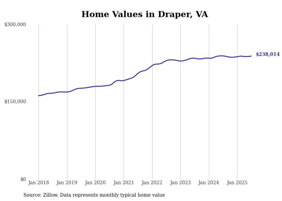 Stacker compiled a list of cities with the most expensive homes in the Blacksburg metro area using data from Zillow. Charts show the monthly typical home value since January 2018. All 18 cities and towns with data available were included in the list.