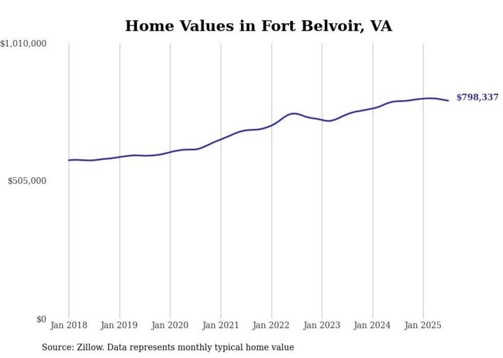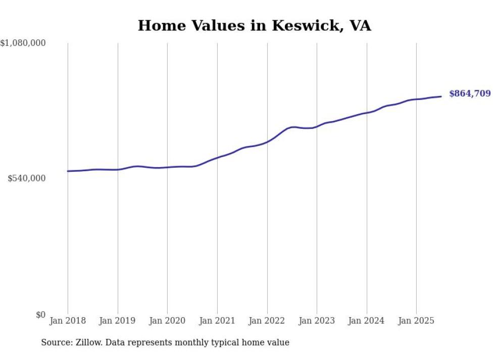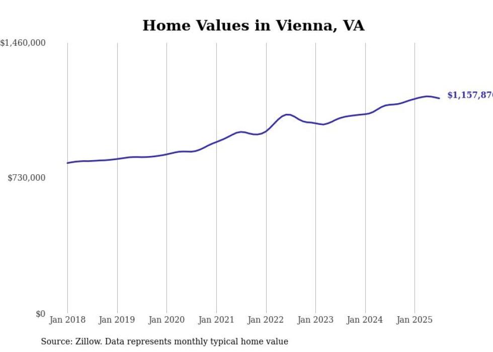 Stacker compiled a list of cities with the most expensive homes in Virginia using data from Zillow. Cities are ranked by the Zillow Home Values Index for all homes as of July 2025. The charts in this story were created automatically using Matplotlib.