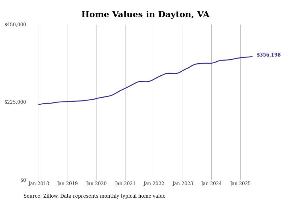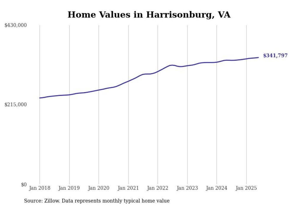 Cities with the fastest-growing home prices in the Harrisonburg metro area