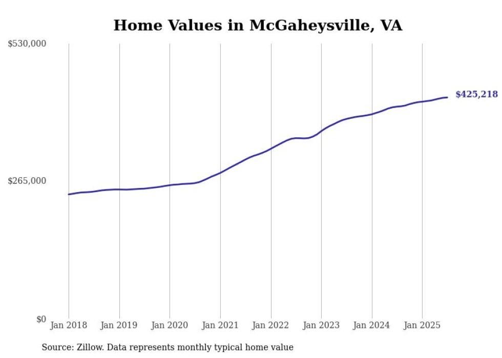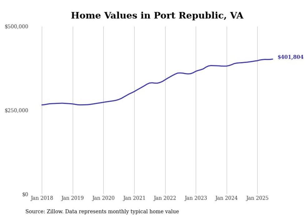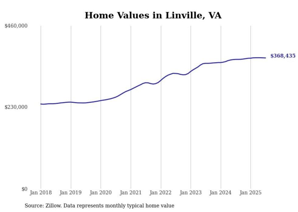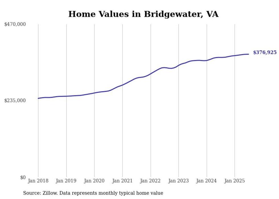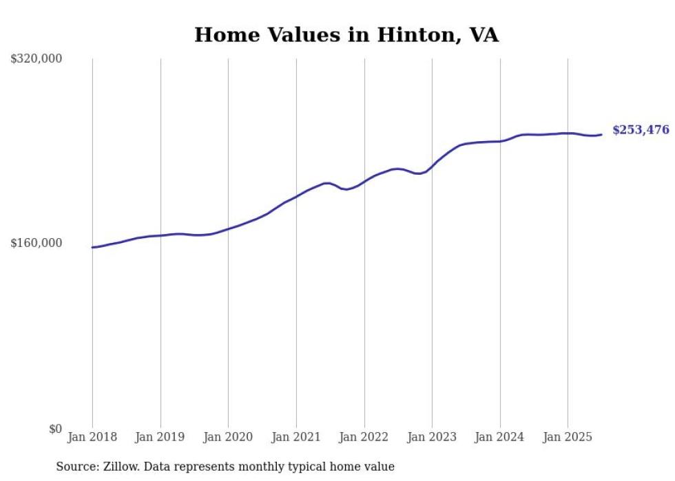 Stacker compiled a list of cities with the most expensive homes in the Harrisonburg metro area using data from Zillow. Charts show the monthly typical home value since January 2018. All 13 cities and towns with data available were included in the list.