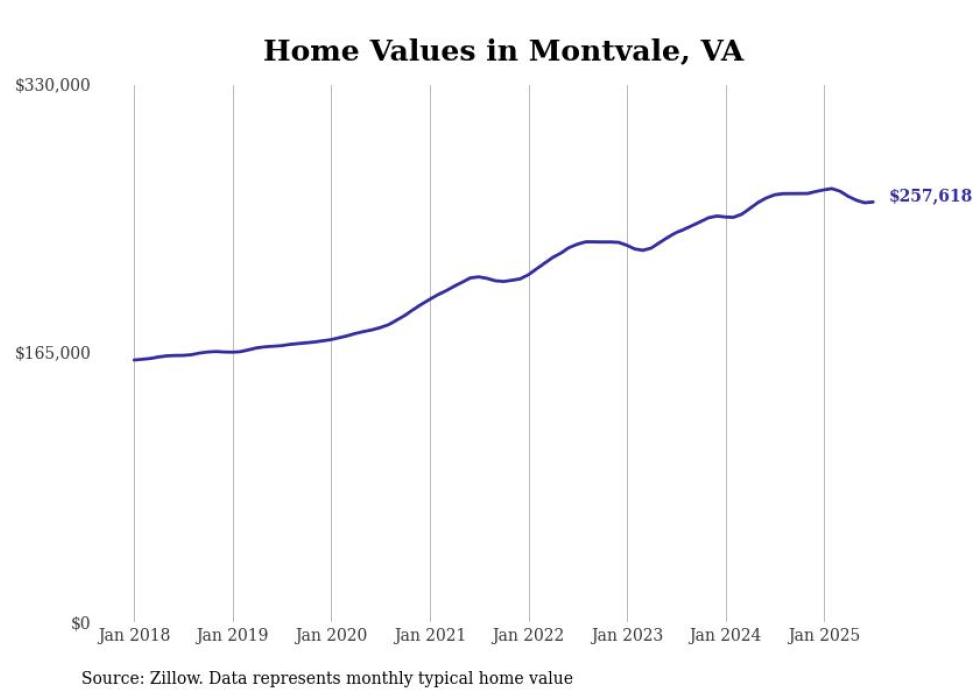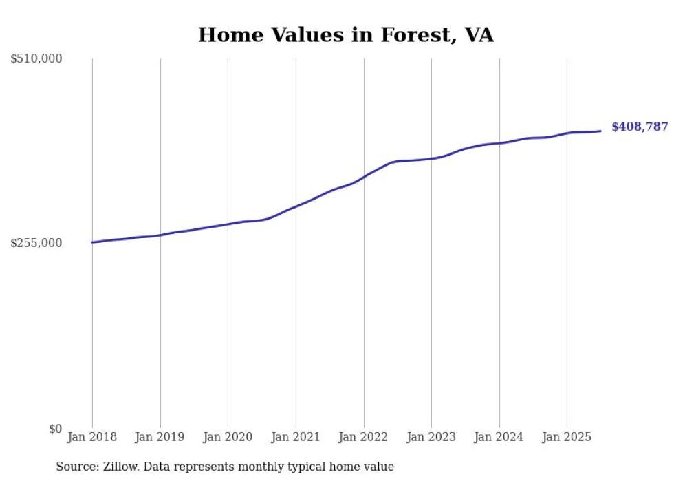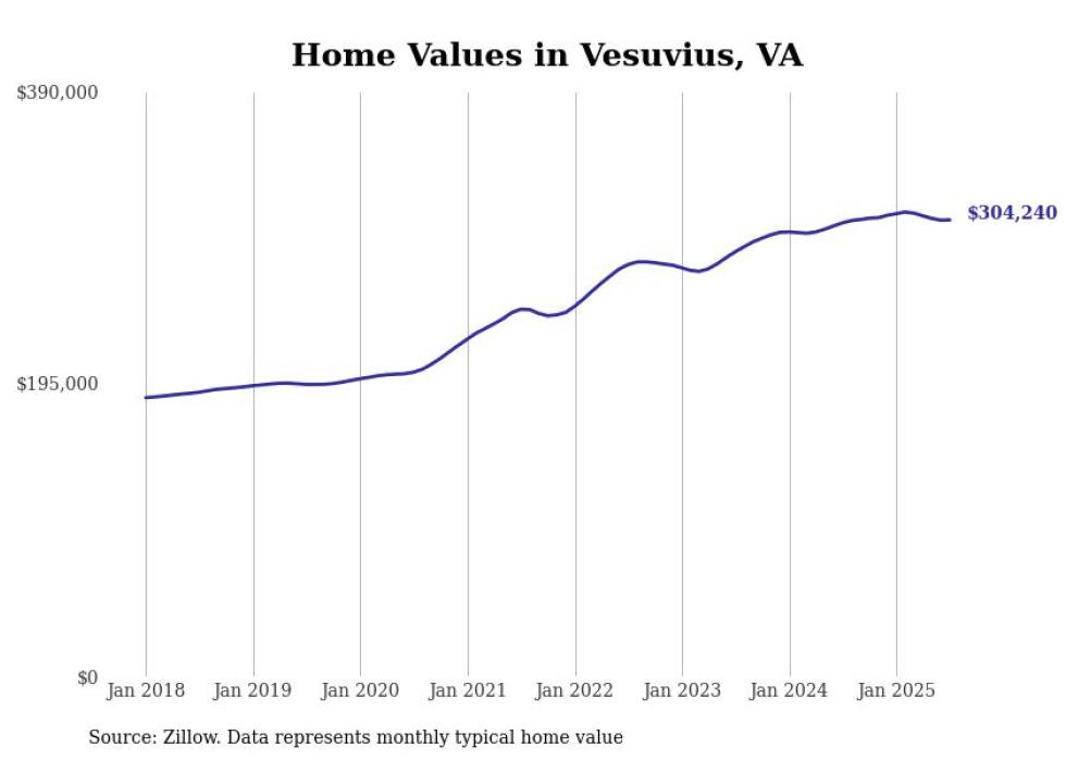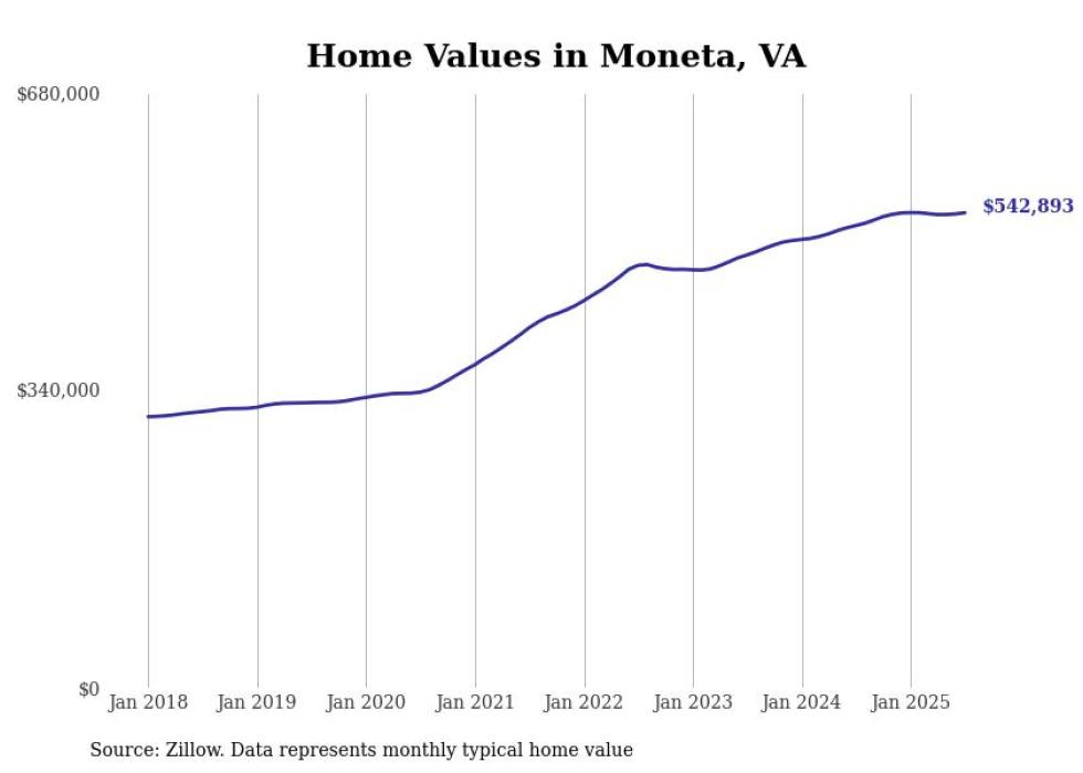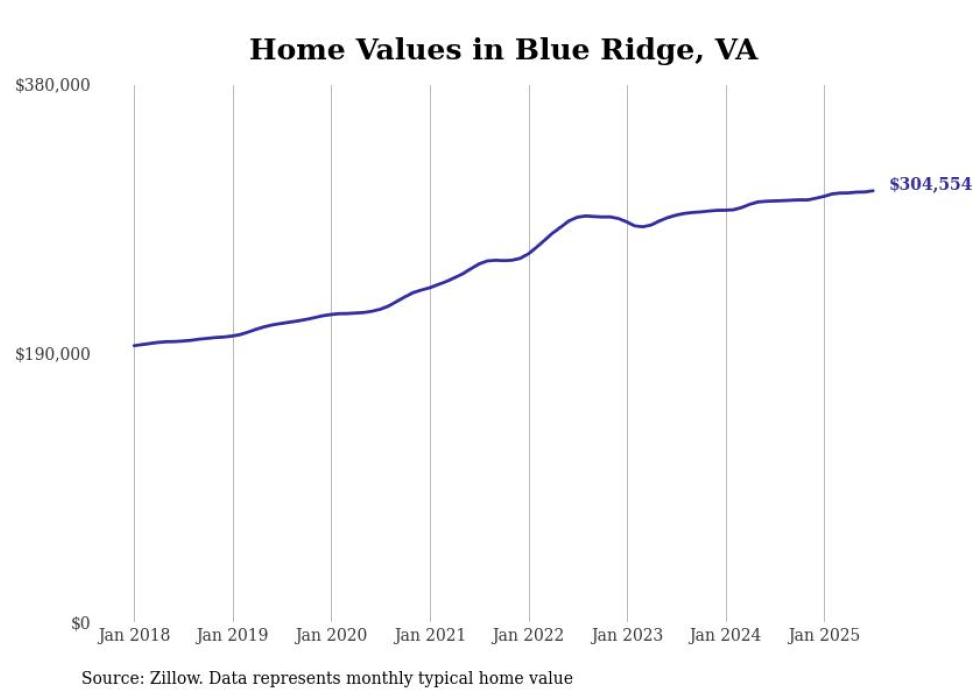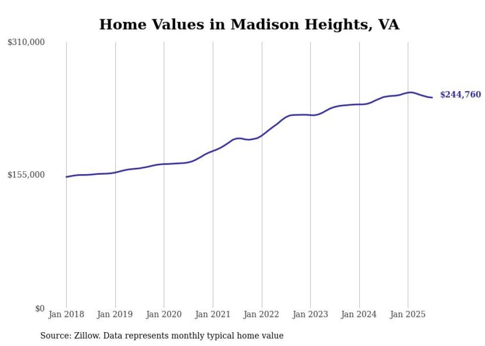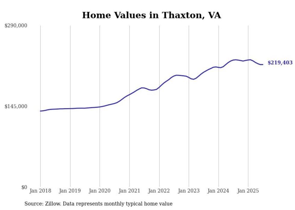 Stacker compiled a list of cities with the most expensive homes in the Lynchburg metro area using data from Zillow. Charts show the monthly typical home value since January 2018. All 28 cities and towns with data available were included in the list.