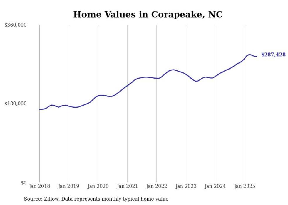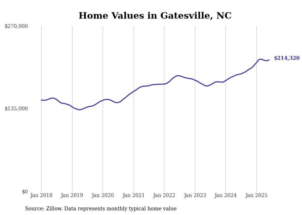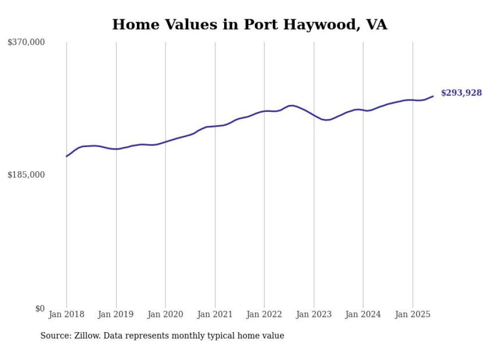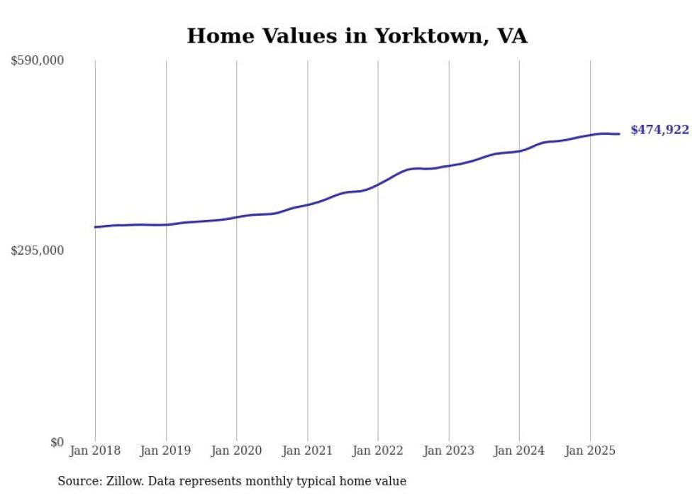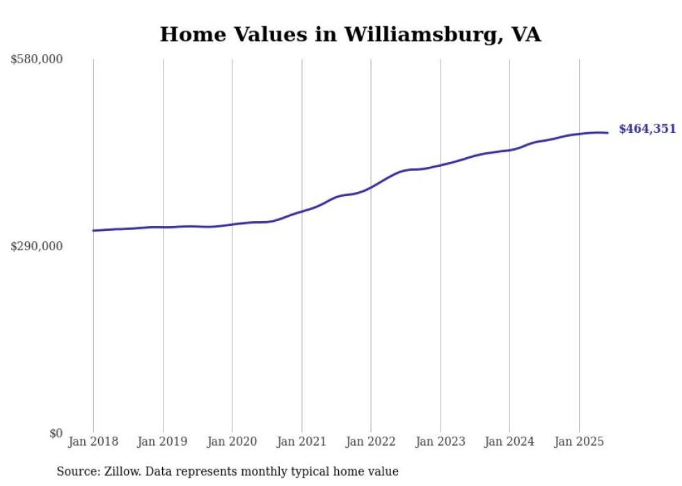 Stacker compiled a list of cities with the most expensive homes in the Virginia Beach-Norfolk-Newport News, VA-NC metro area using data from Zillow. Charts show the monthly typical home value since January 2018.