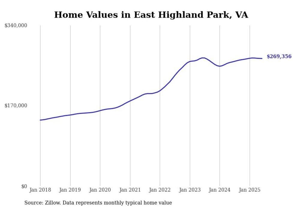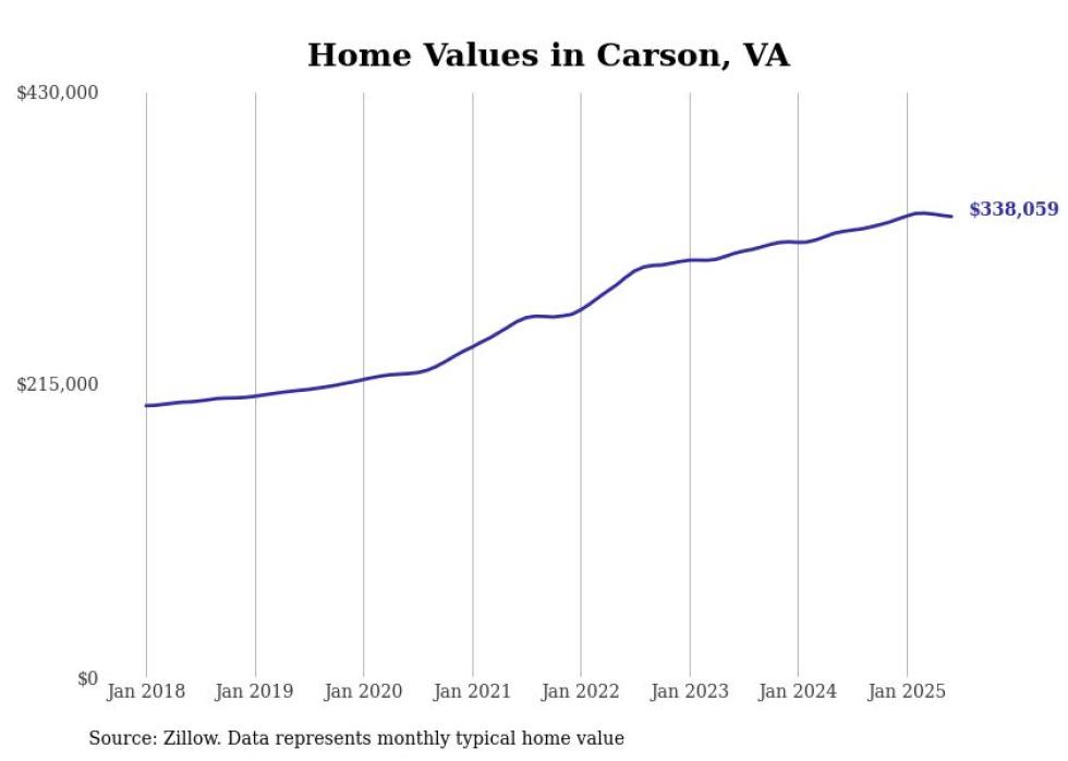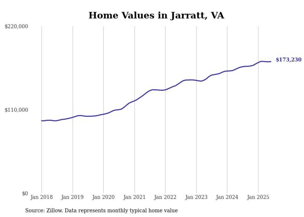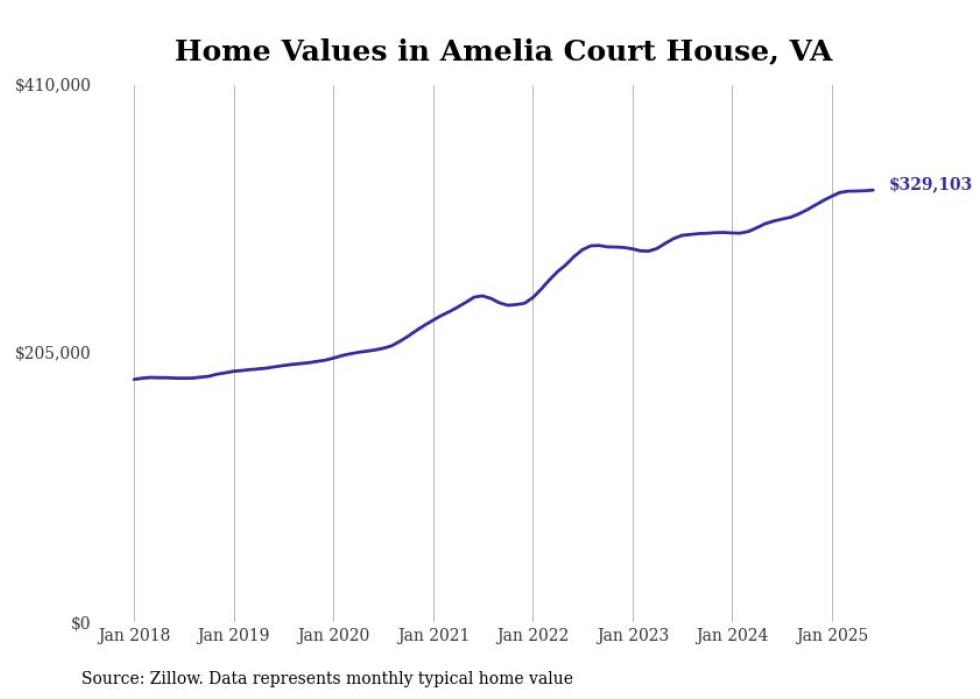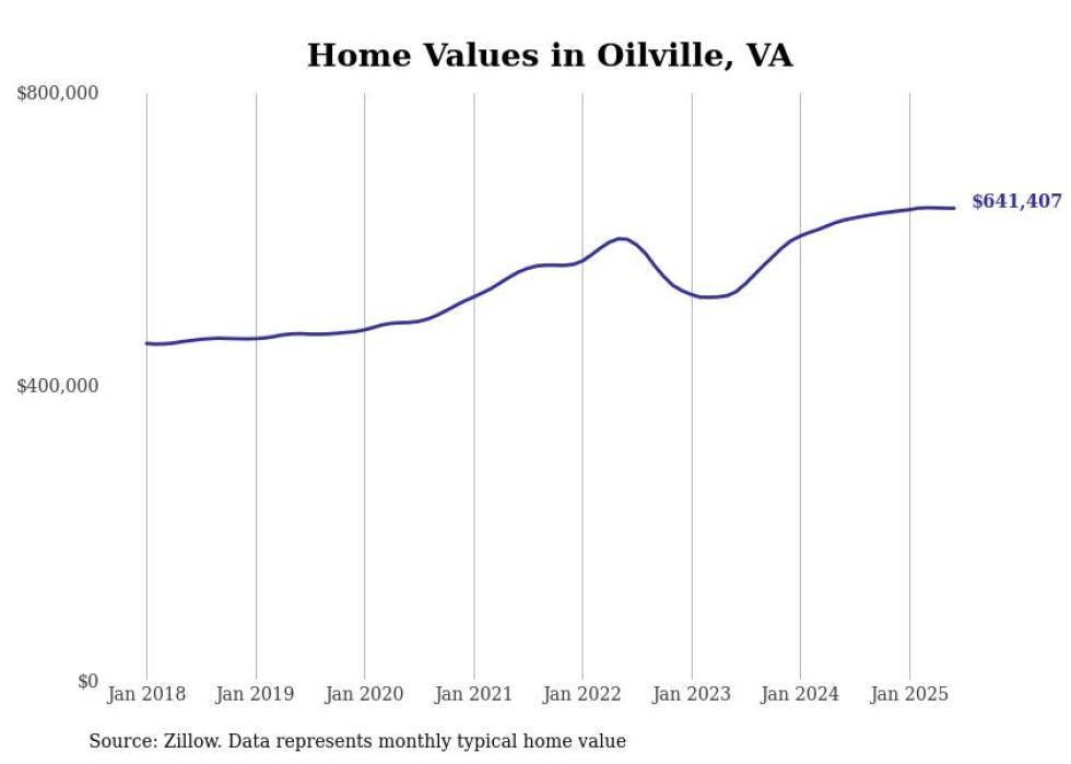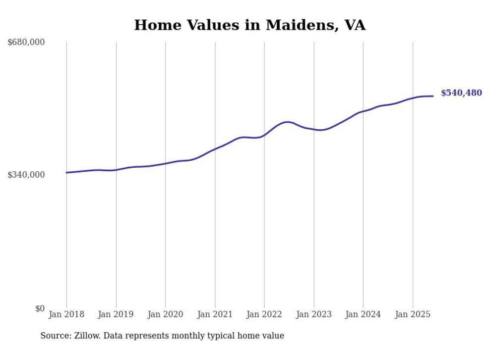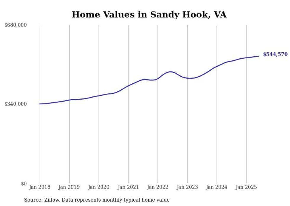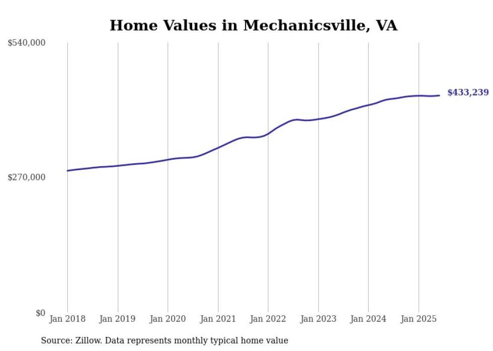 Stacker compiled a list of cities with the most expensive homes in the Richmond, VA metro area using data from Zillow. Charts show the monthly typical home value since January 2018.