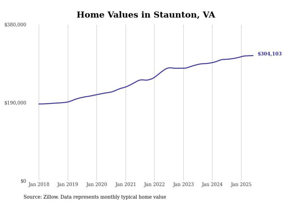 Stacker compiled a list of cities with the most expensive homes in the Staunton, VA metro area using data from Zillow. Charts show the monthly typical home value since January 2018.