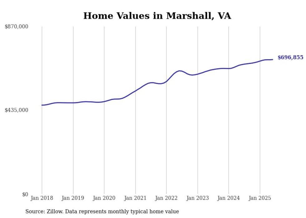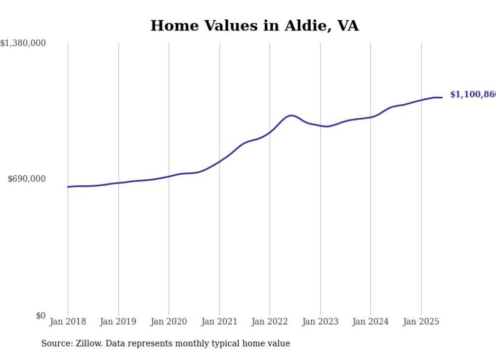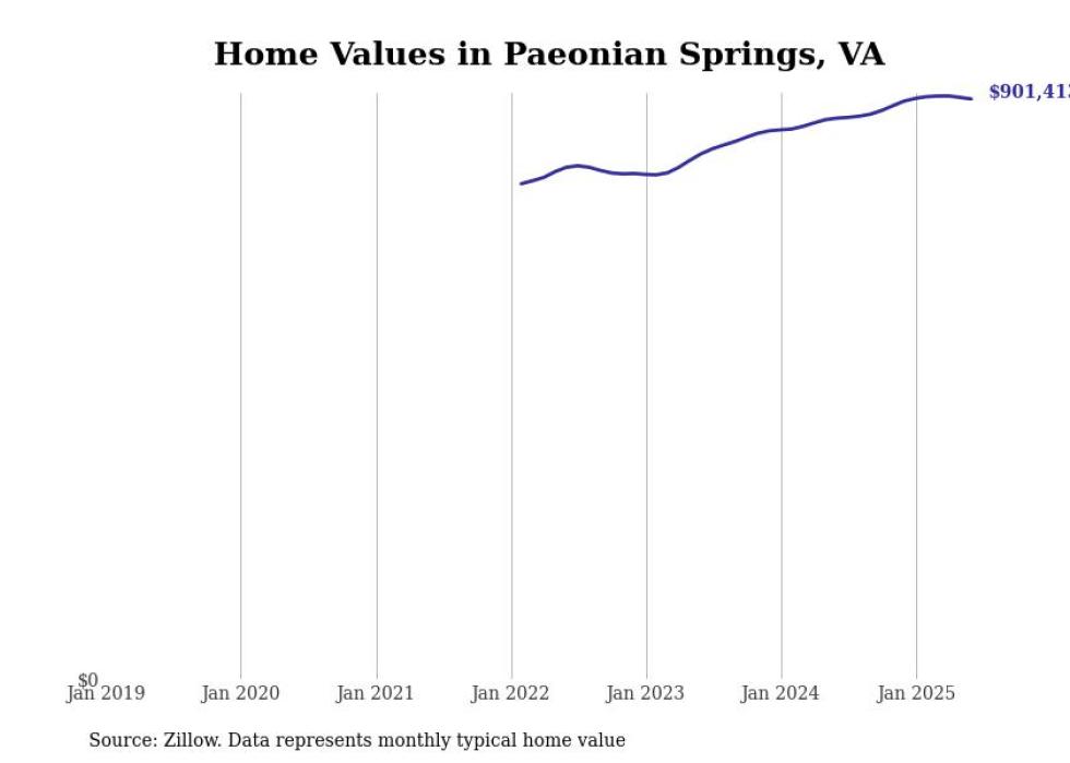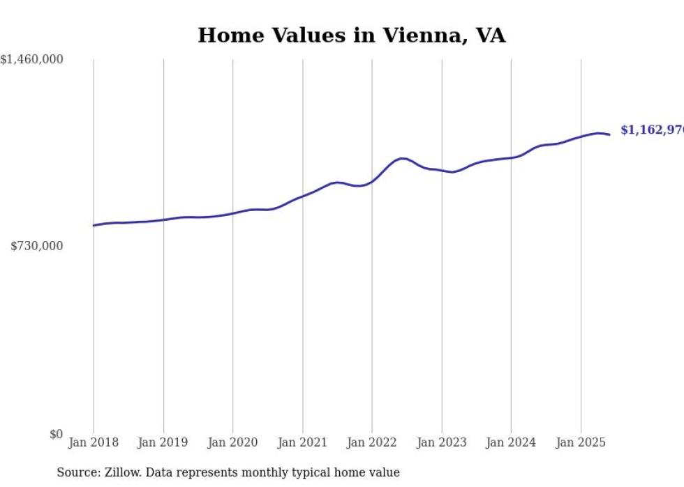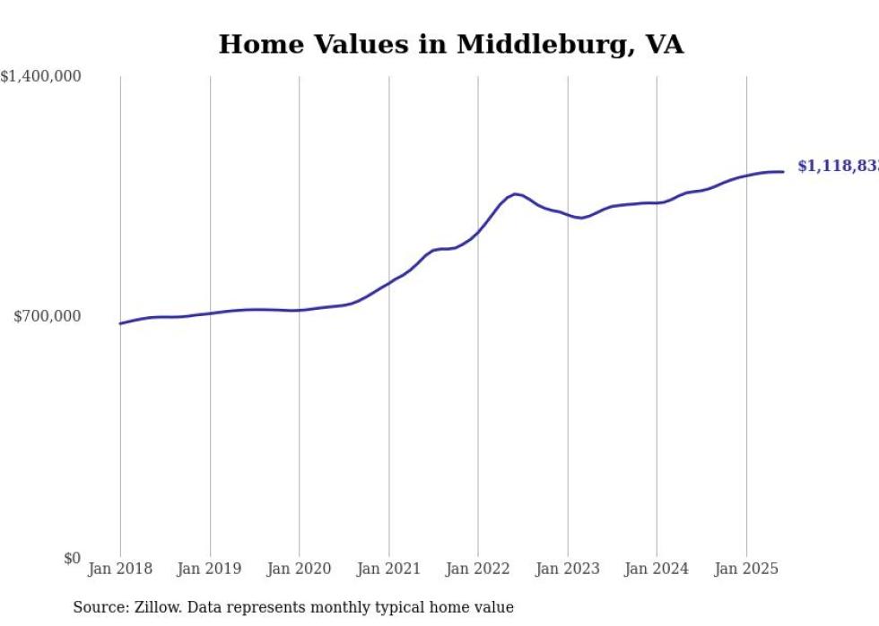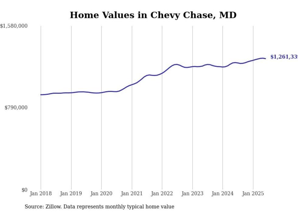 Stacker compiled a list of cities with the most expensive homes in the Washington-Arlington-Alexandria, DC-VA-MD-WV metro area using data from Zillow. Charts show the monthly typical home value since January 2018.
