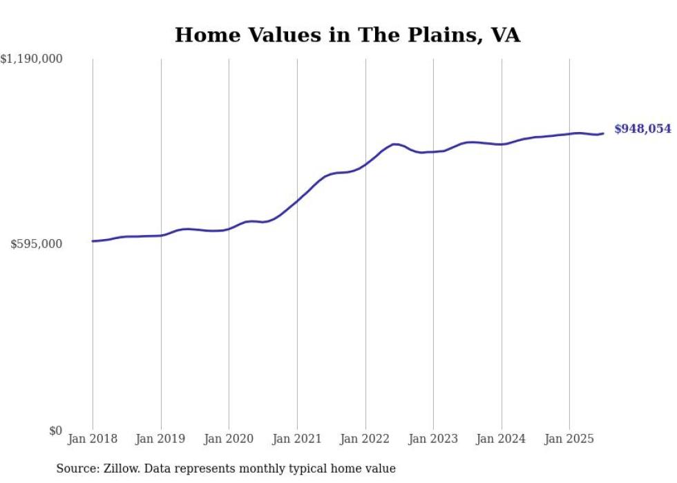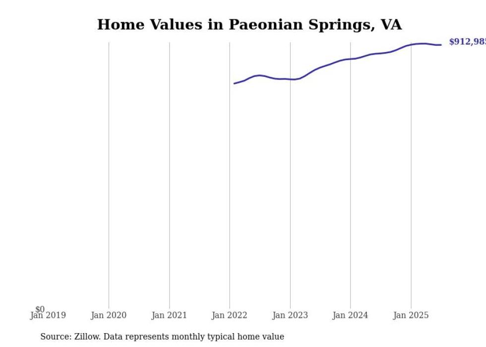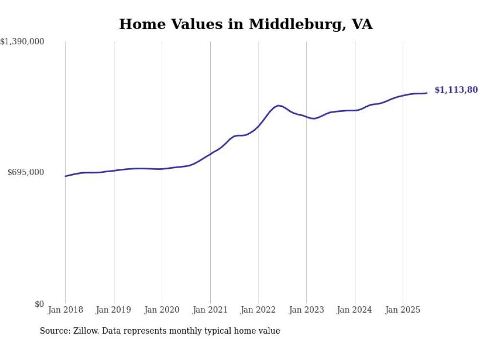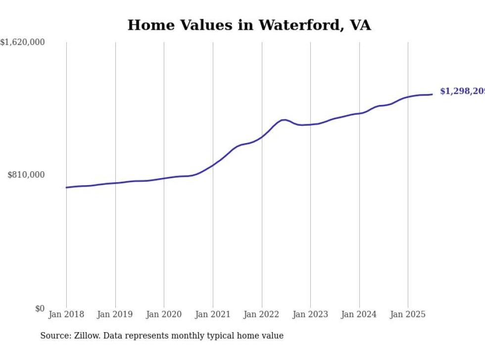 Stacker compiled a list of cities with the most expensive homes in the Washington, D.C. metro area using data from Zillow. Charts show the monthly typical home value since January 2018. Data was available for 233 cities and towns.