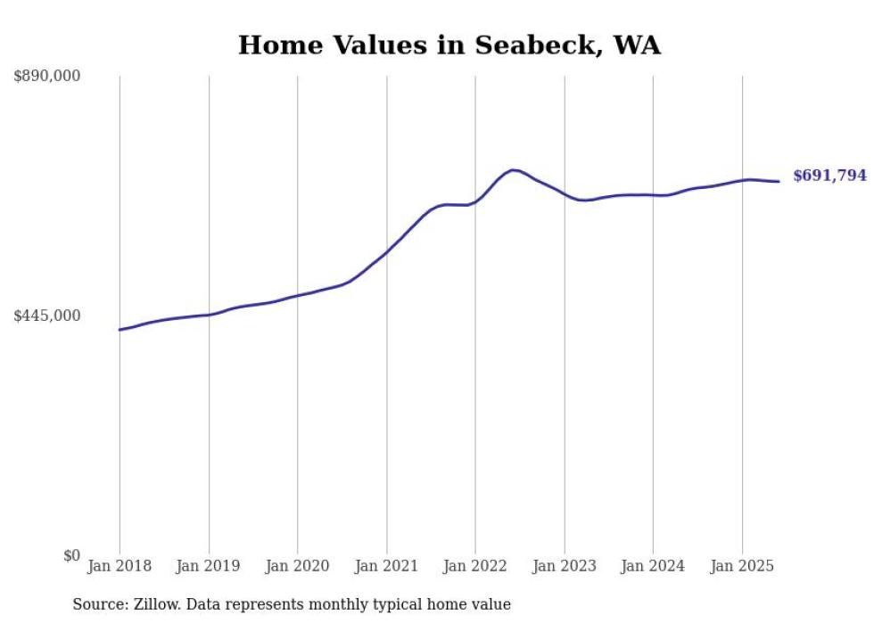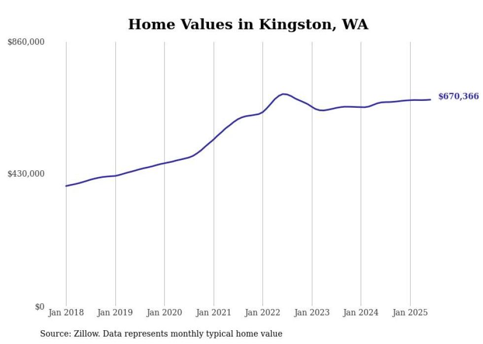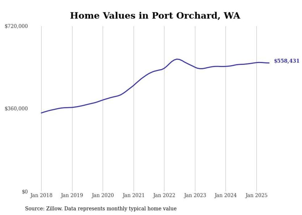 Stacker compiled a list of cities with the most expensive homes in the Bremerton-Silverdale-Port Orchard, WA metro area using data from Zillow. Charts show the monthly typical home value since January 2018.