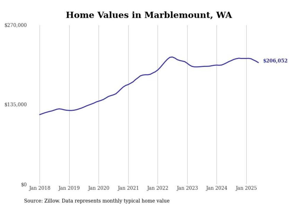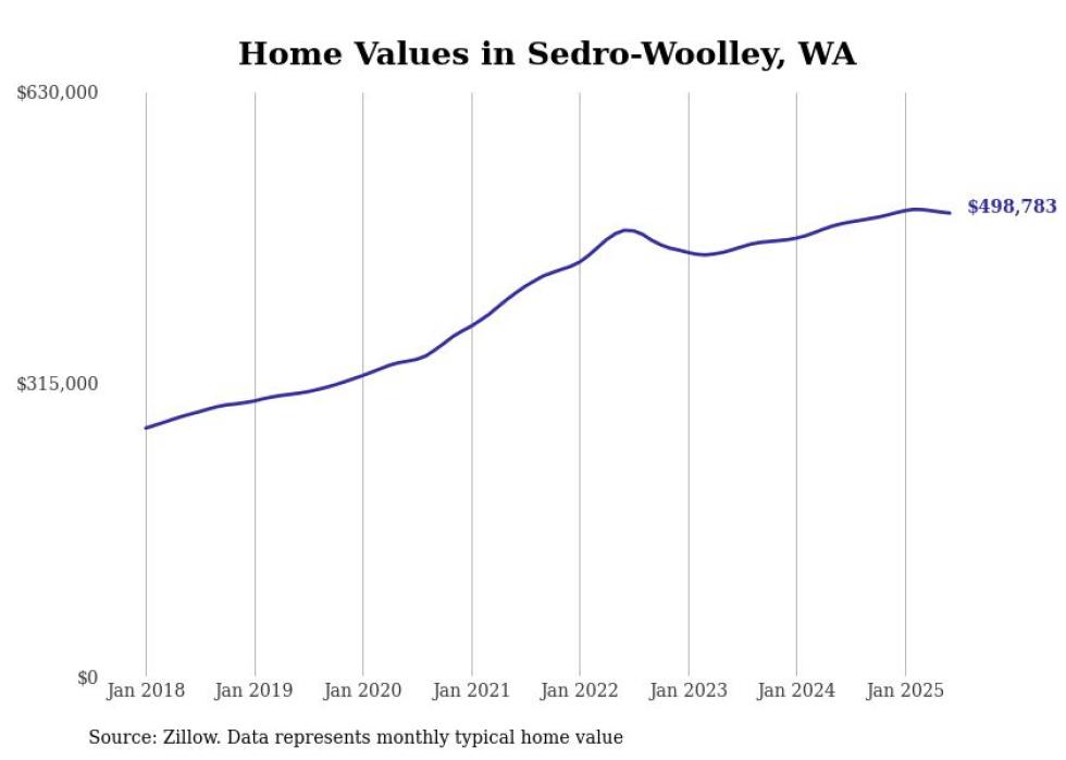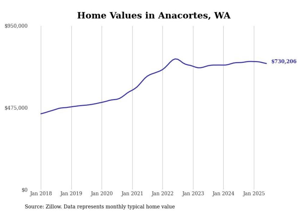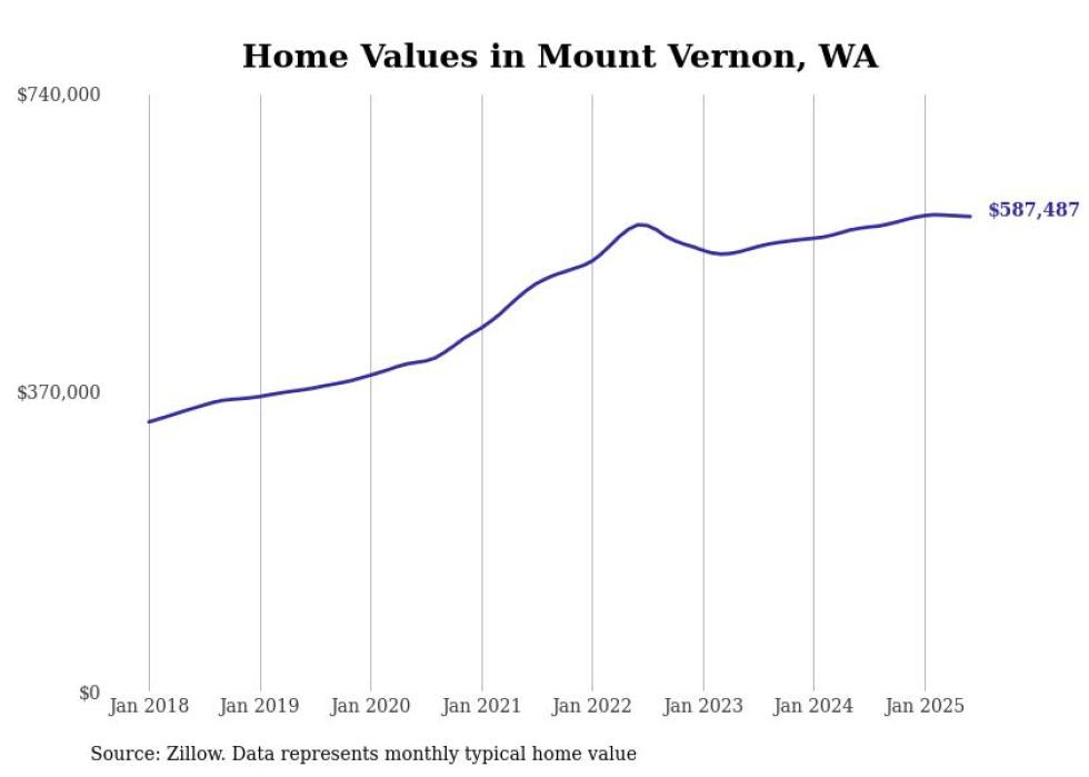 Stacker compiled a list of cities with the most expensive homes in the Mount Vernon-Anacortes, WA metro area using data from Zillow. Charts show the monthly typical home value since January 2018.