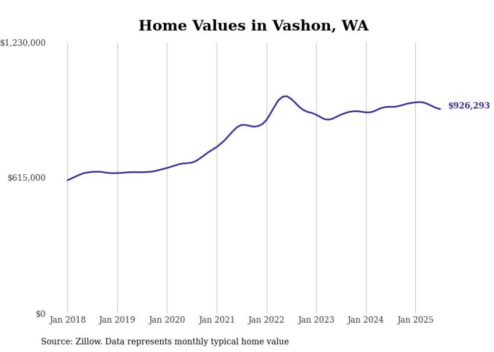 Stacker compiled a list of cities with the most expensive homes in the Seattle metro area using data from Zillow. Charts show the monthly typical home value since January 2018. Data was available for 96 cities and towns.