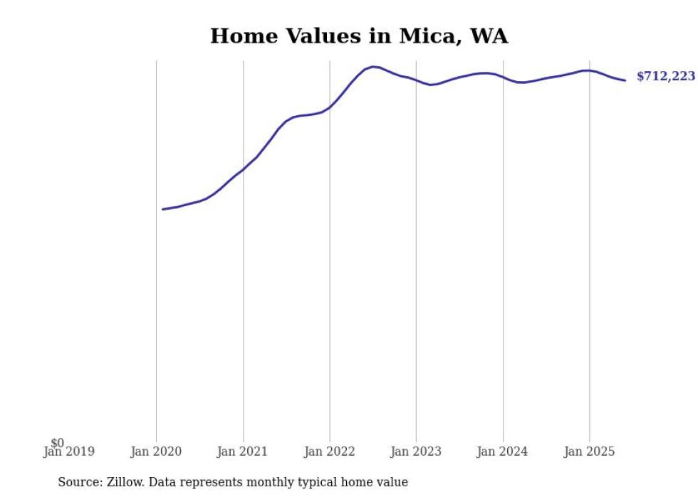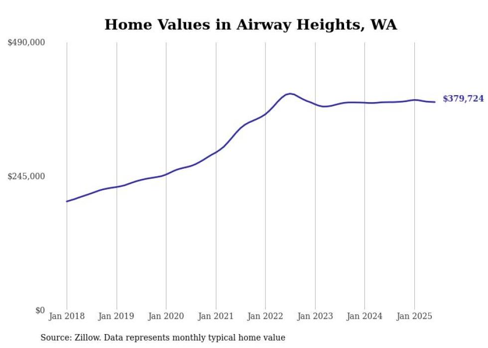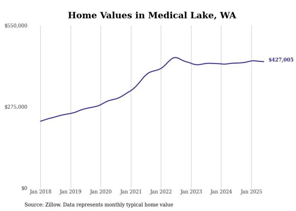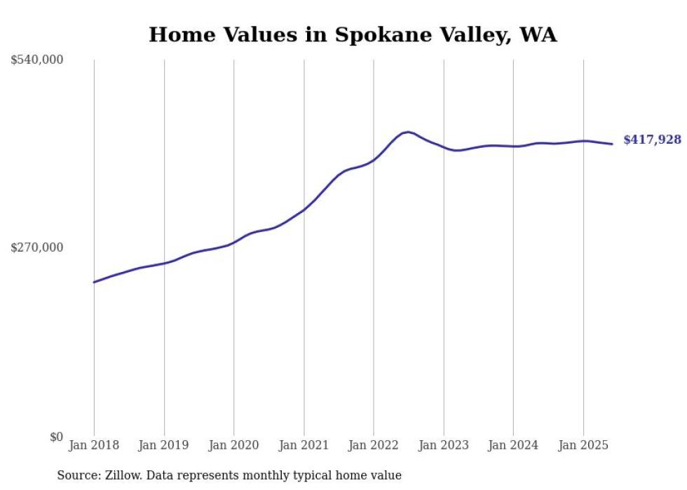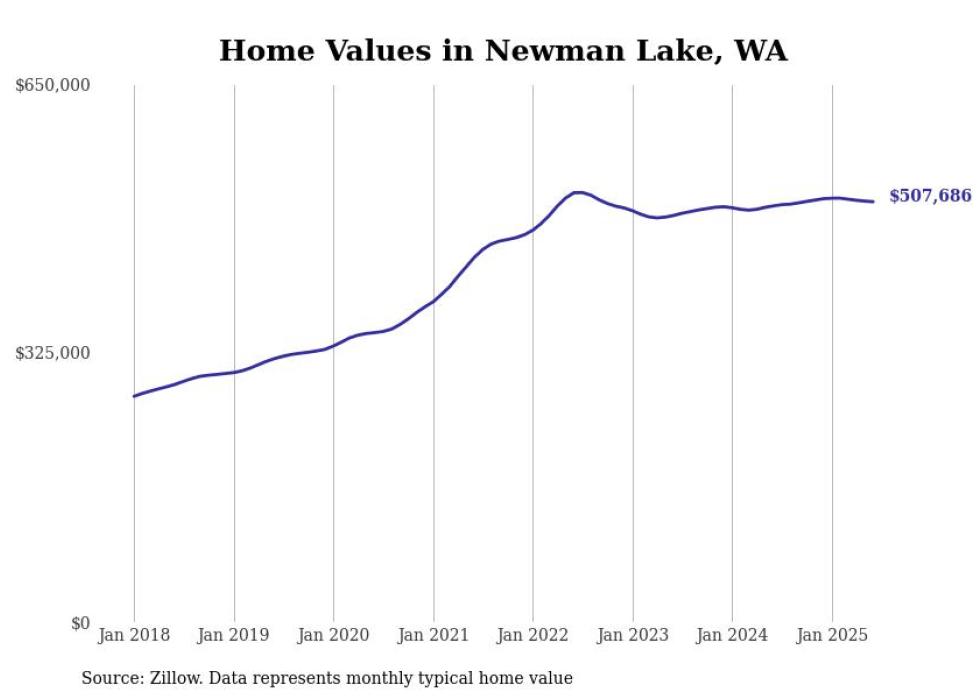 Stacker compiled a list of cities with the most expensive homes in the Spokane-Spokane Valley, WA metro area using data from Zillow. Charts show the monthly typical home value since January 2018.