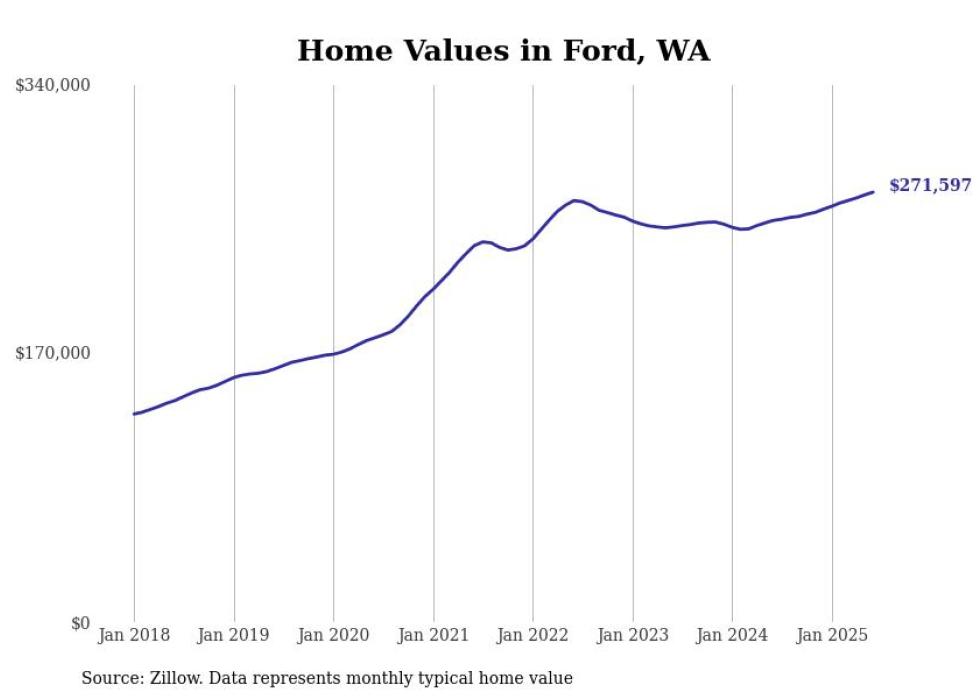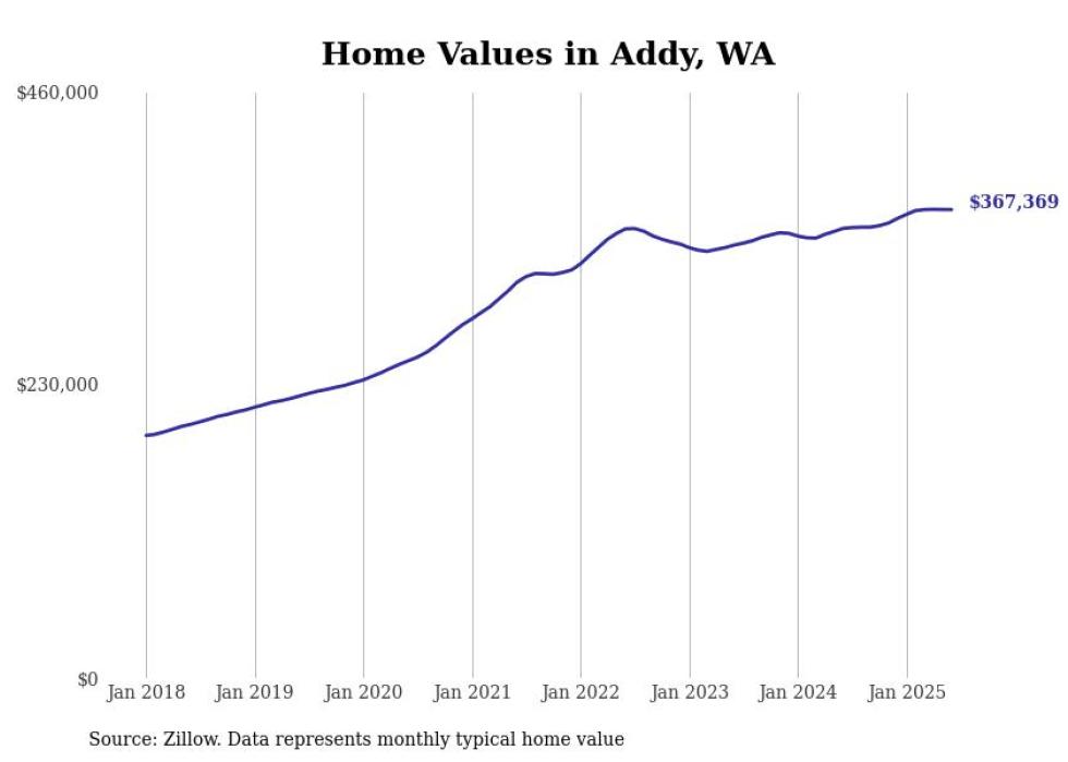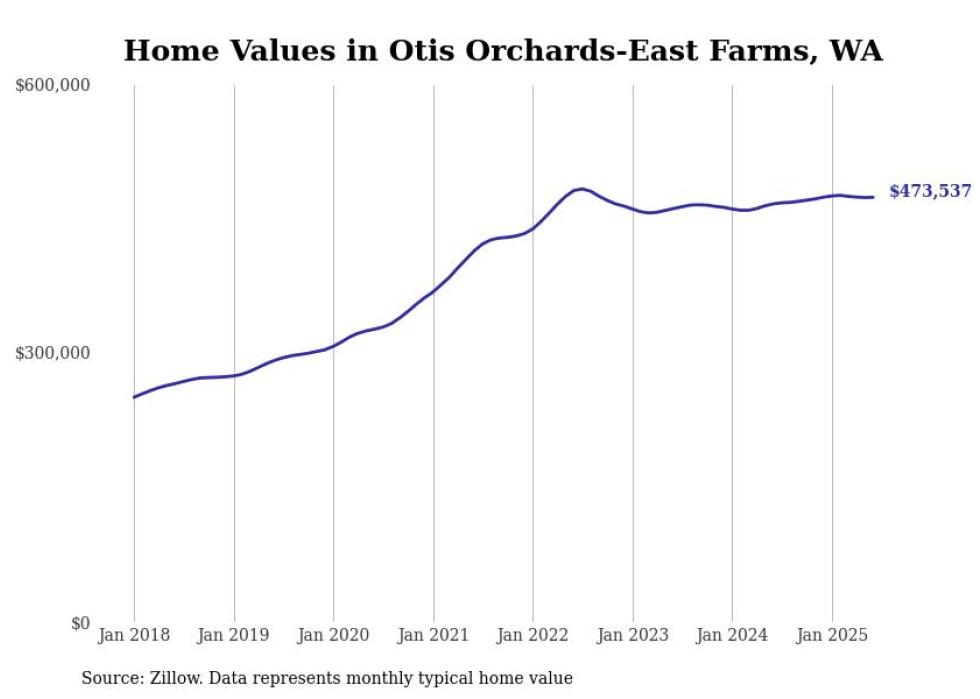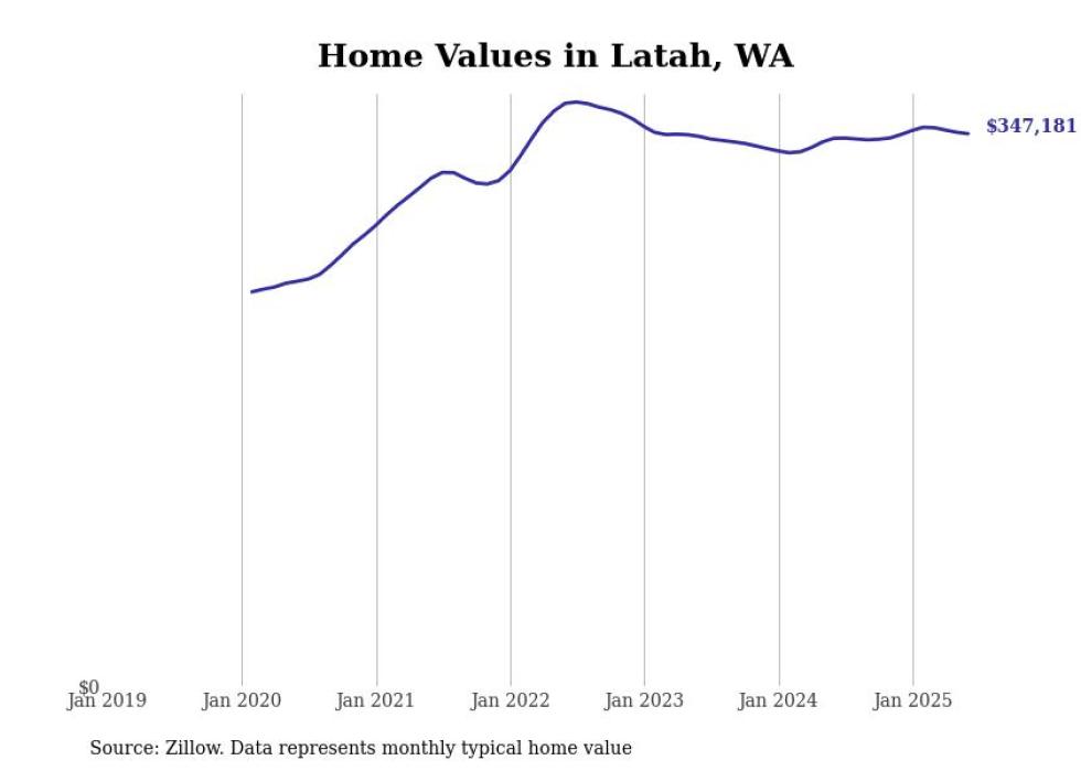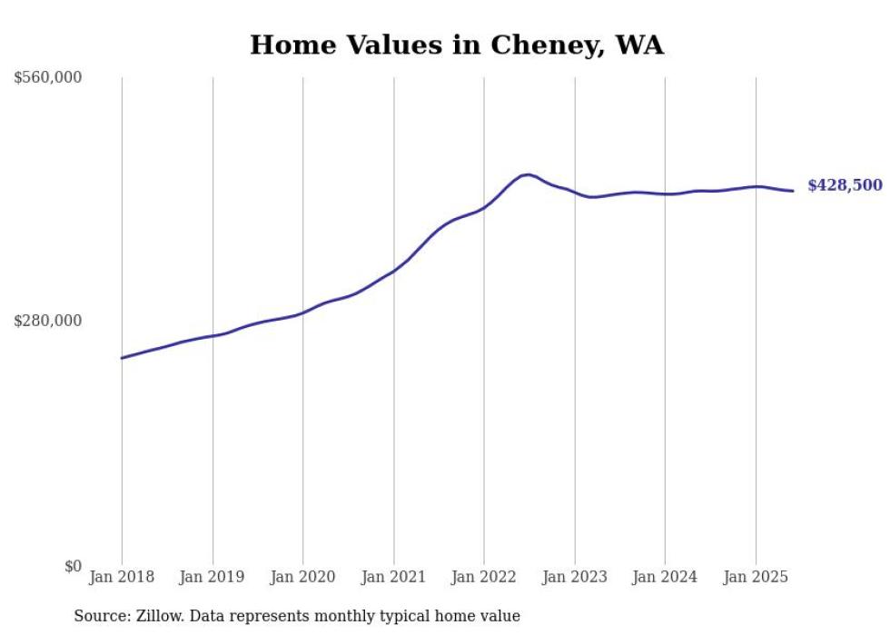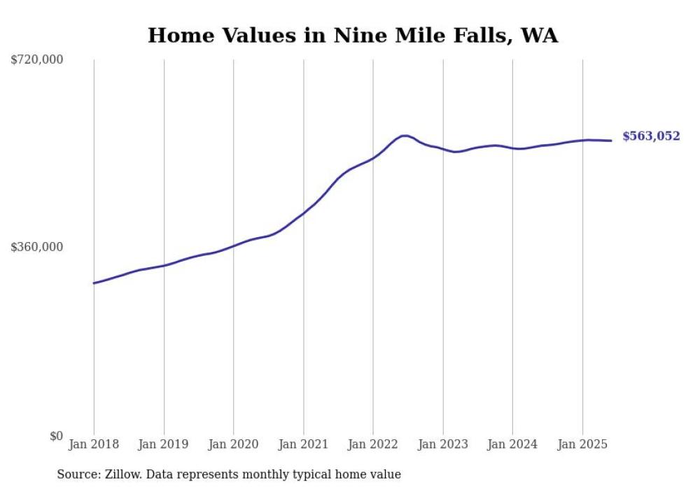 Stacker compiled a list of cities with the most expensive homes in the Spokane-Spokane Valley, WA metro area using data from Zillow. Charts show the monthly typical home value since January 2018.