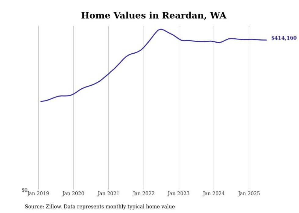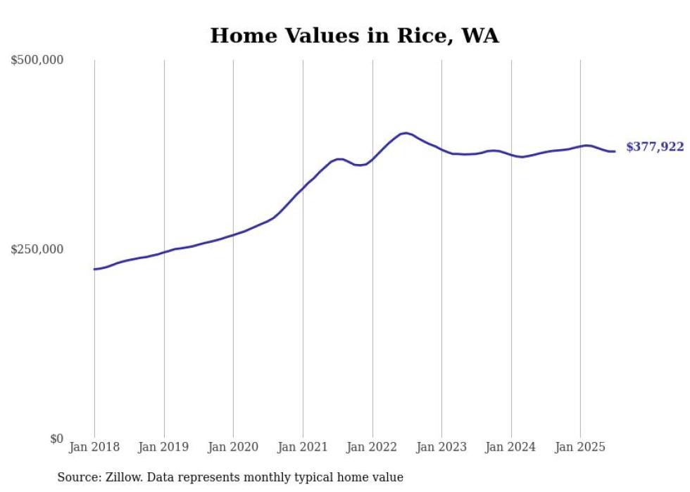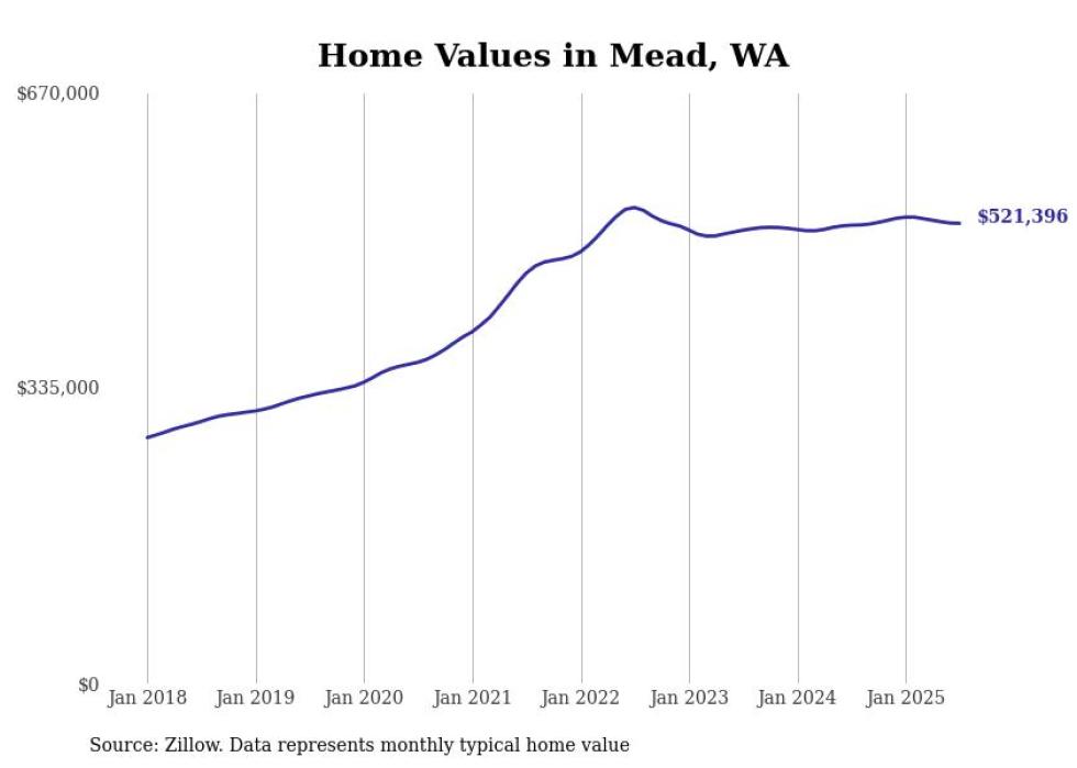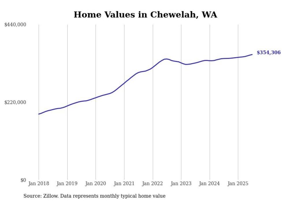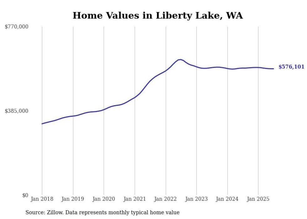Stacker compiled a list of cities with the most expensive homes in the Spokane metro area using data from Zillow. Charts show the monthly typical home value since January 2018. Data was available for 34 cities and towns.
