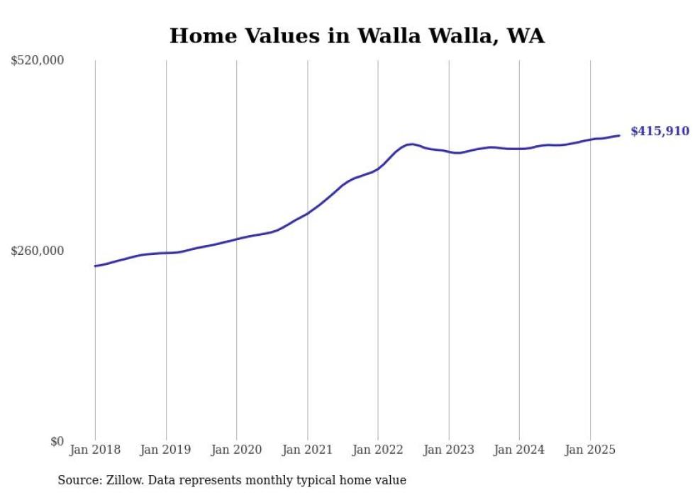 Stacker compiled a list of cities with the most expensive homes in the Walla Walla, WA metro area using data from Zillow. Charts show the monthly typical home value since January 2018.