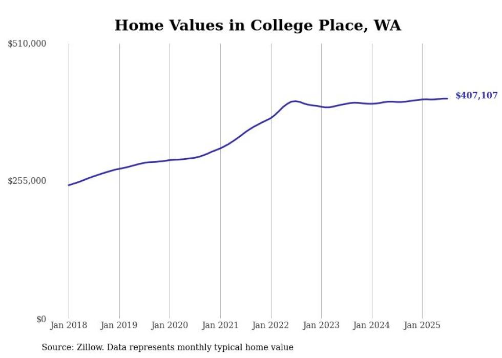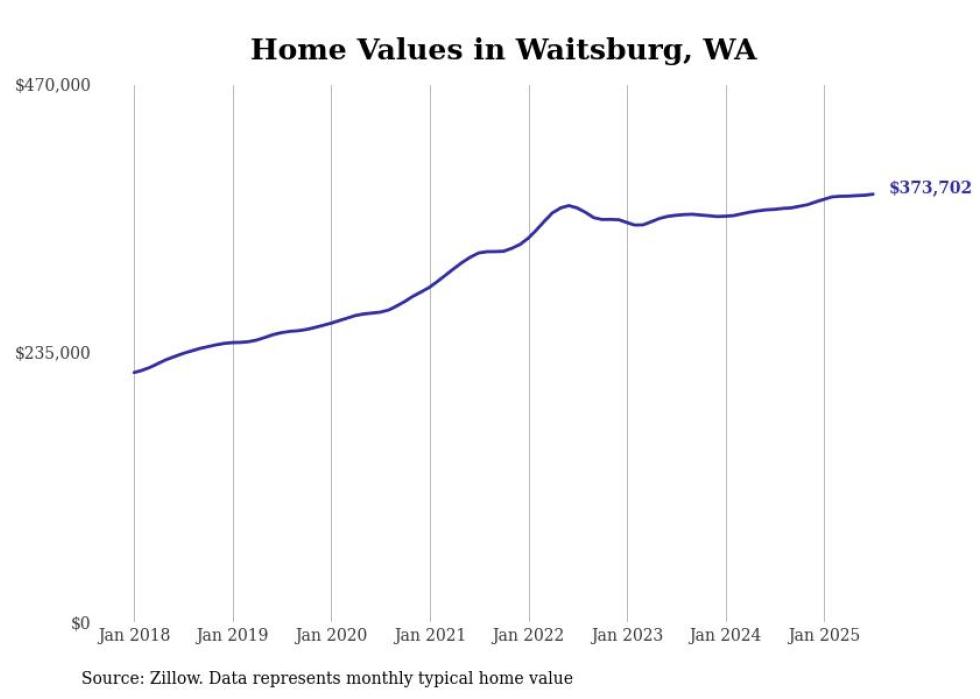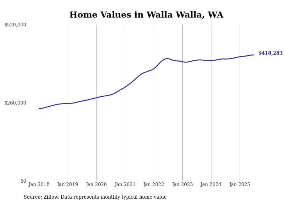 Stacker compiled a list of cities with the most expensive homes in the Walla Walla metro area using data from Zillow. Charts show the monthly typical home value since January 2018. All 6 cities and towns with data available were included in the list.