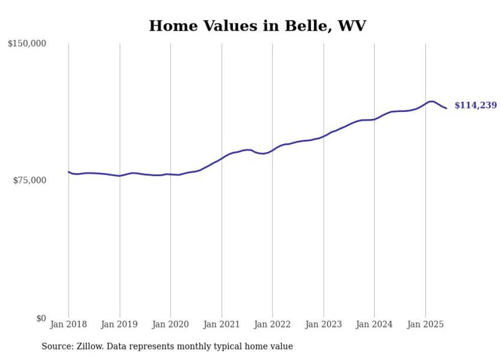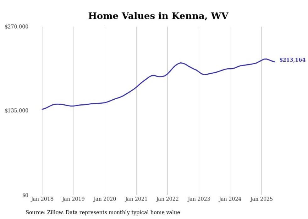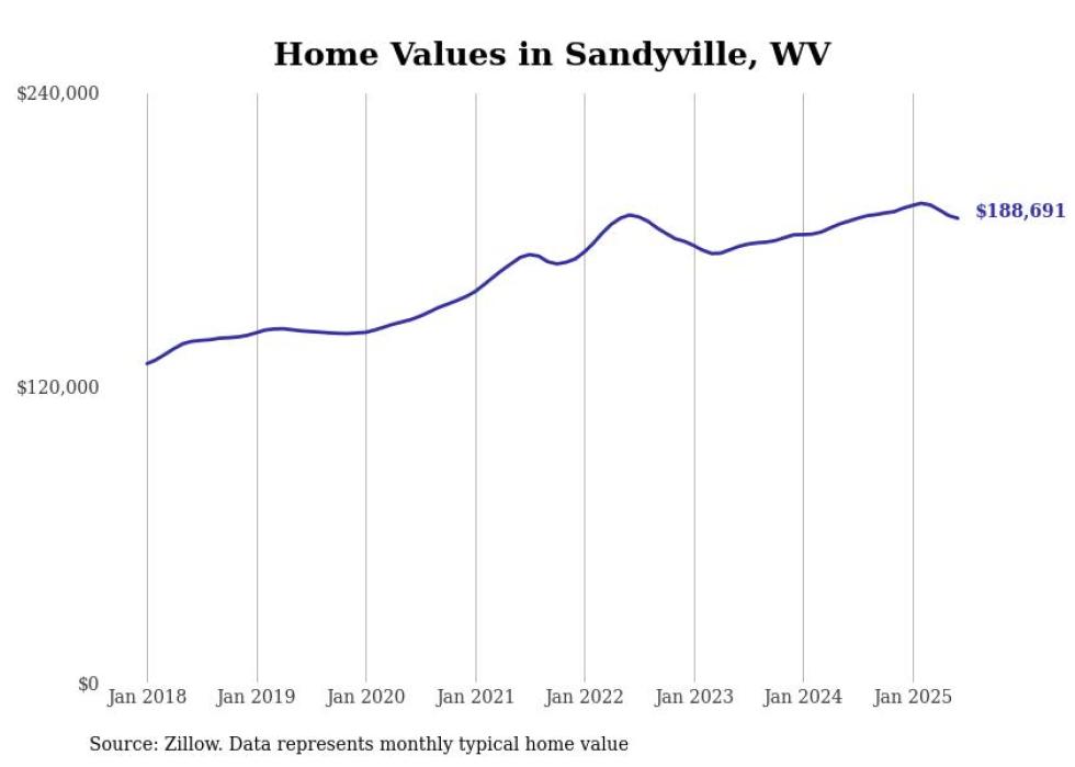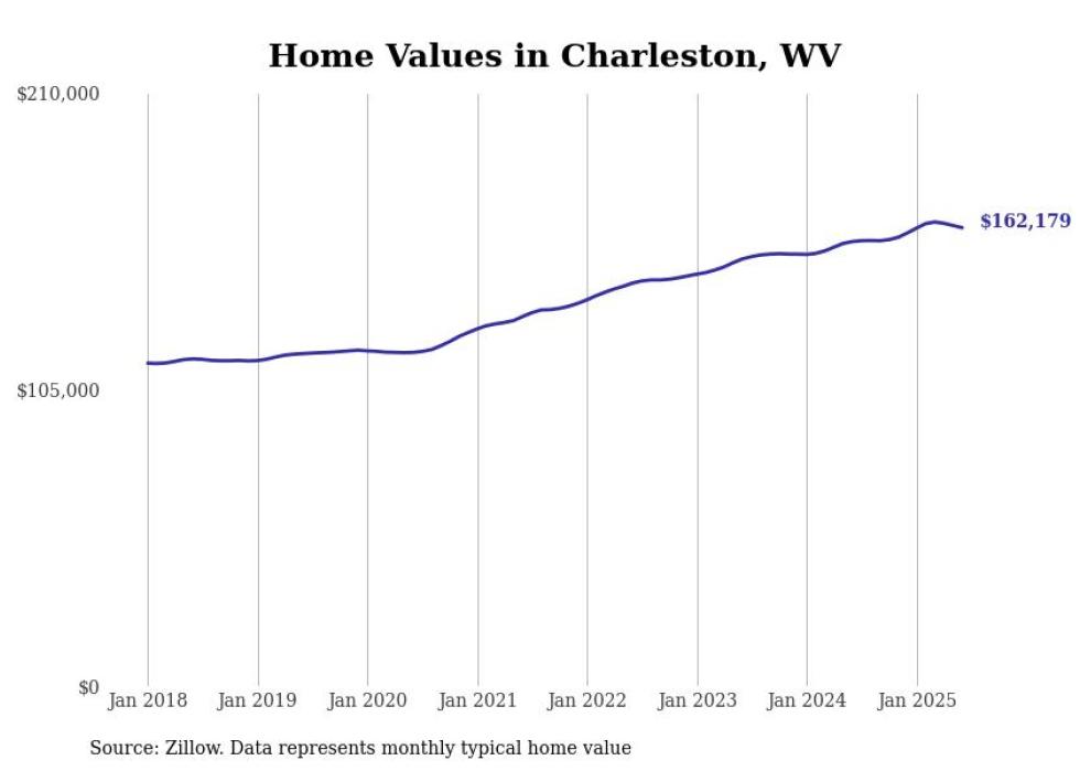 Stacker compiled a list of cities with the most expensive homes in the Charleston, WV metro area using data from Zillow. Charts show the monthly typical home value since January 2018.