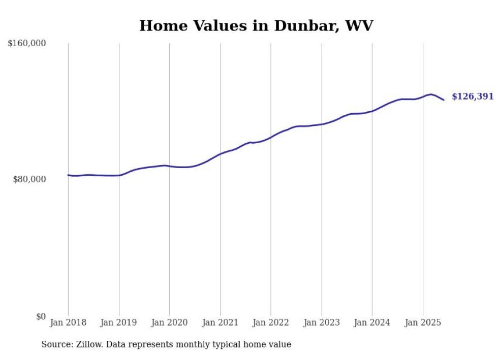 Cities with the fastest-growing home prices in the Charleston, West Virginia metro area