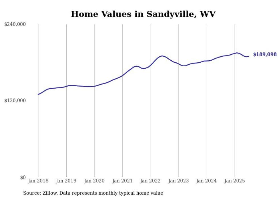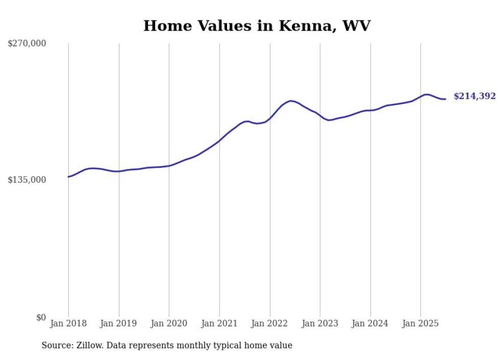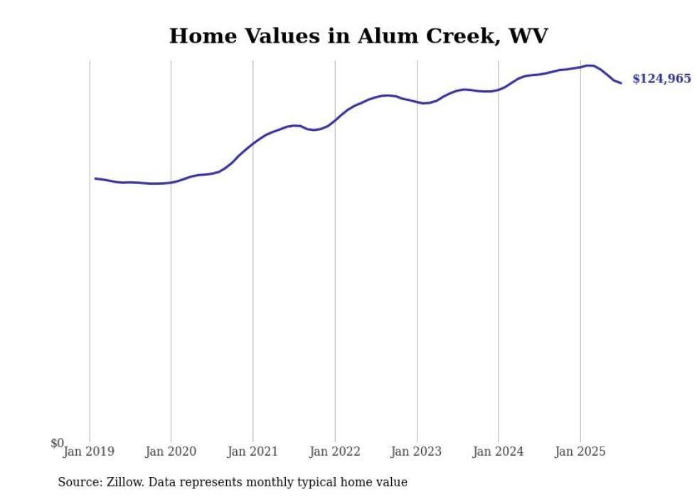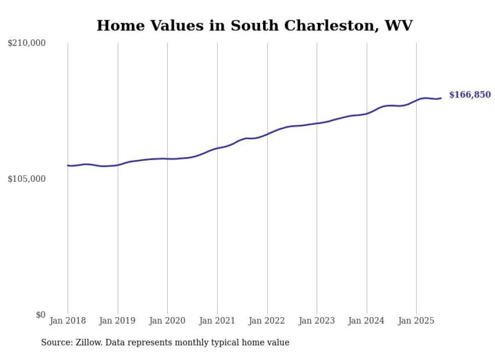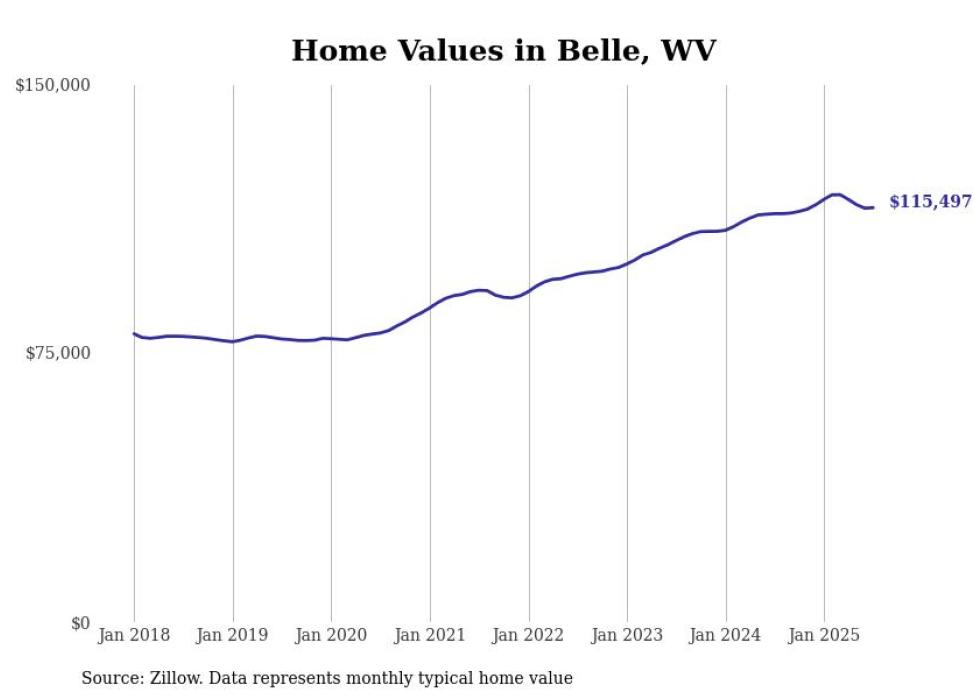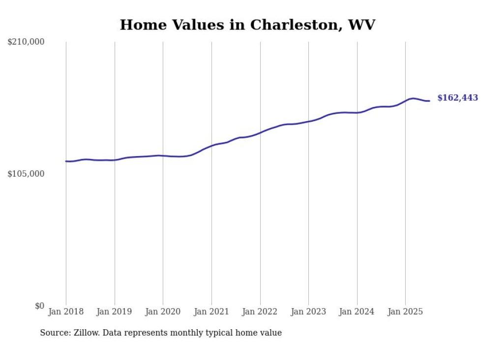 Stacker compiled a list of cities with the most expensive homes in the Charleston, West Virginia metro area using data from Zillow. Charts show the monthly typical home value since January 2018. Data was available for 51 cities and towns.