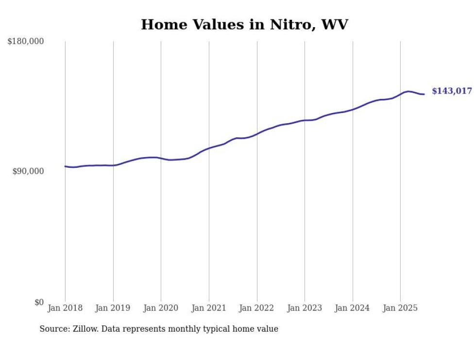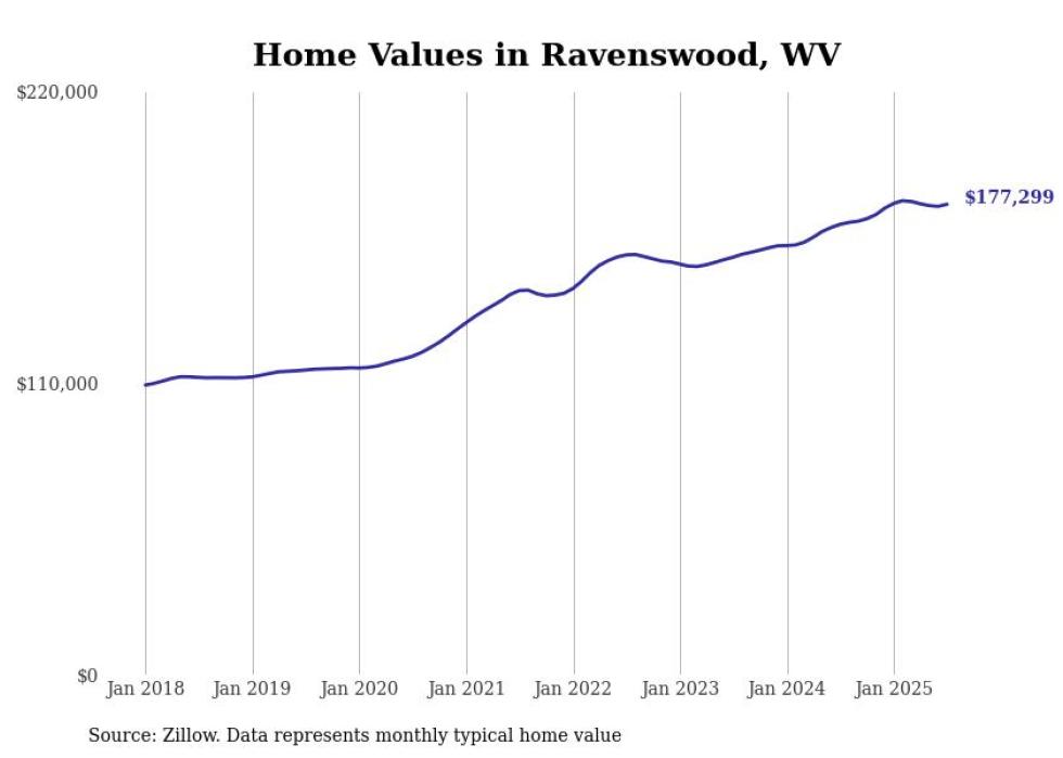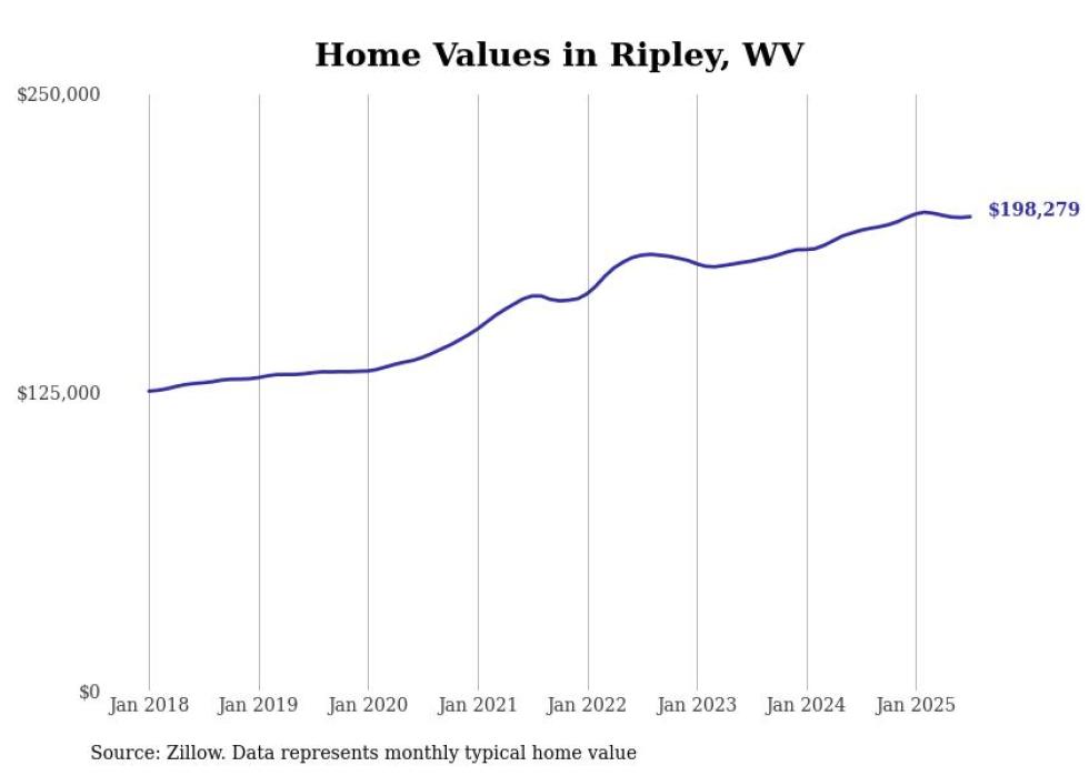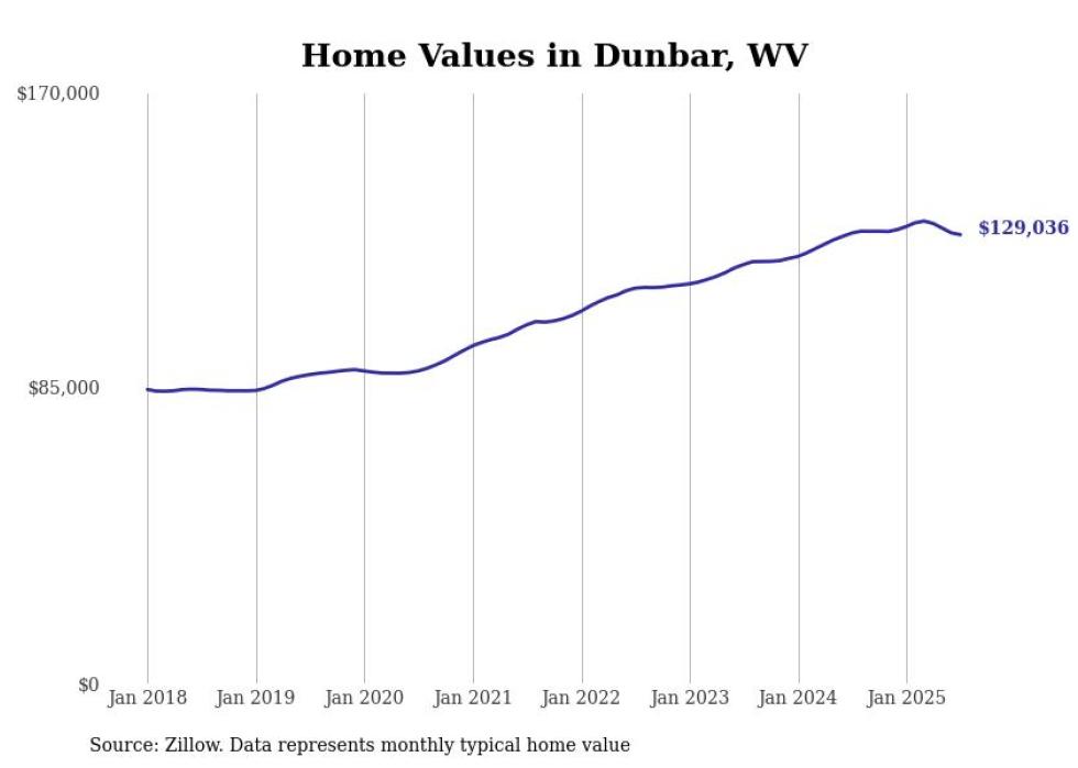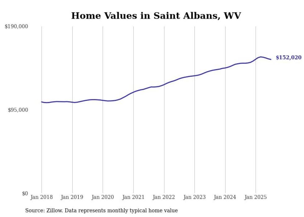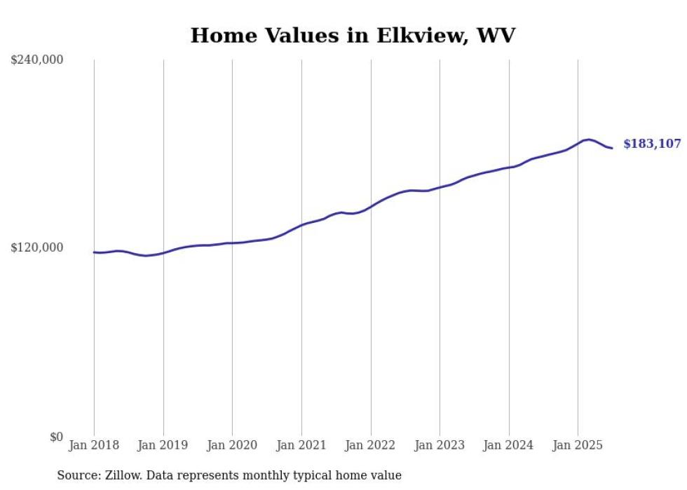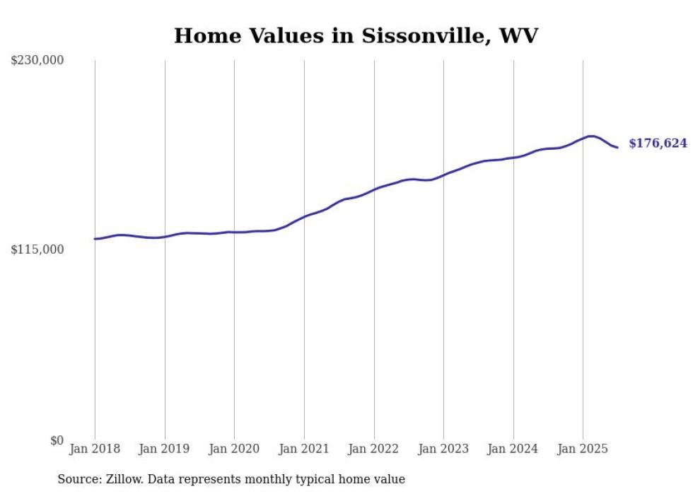Stacker compiled a list of cities with the most expensive homes in the Charleston, West Virginia metro area using data from Zillow. Charts show the monthly typical home value since January 2018. Data was available for 51 cities and towns.