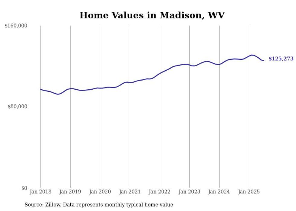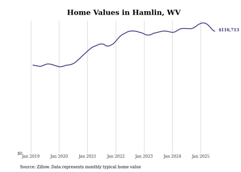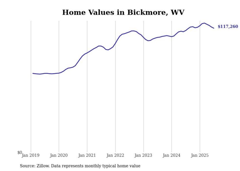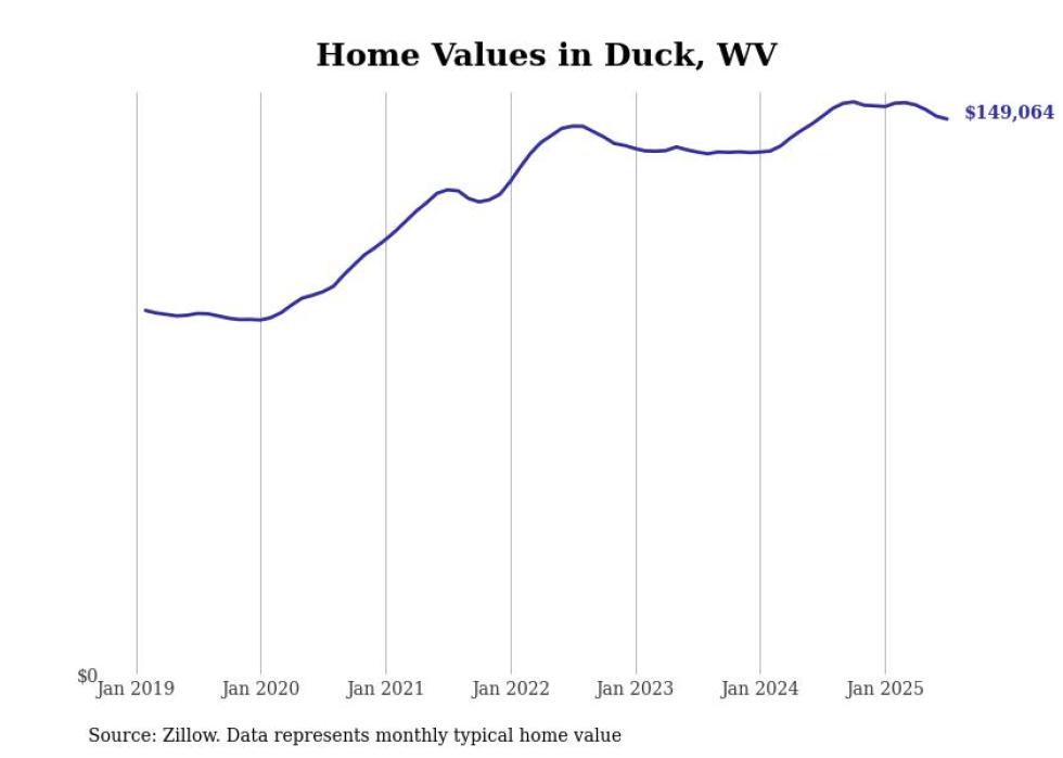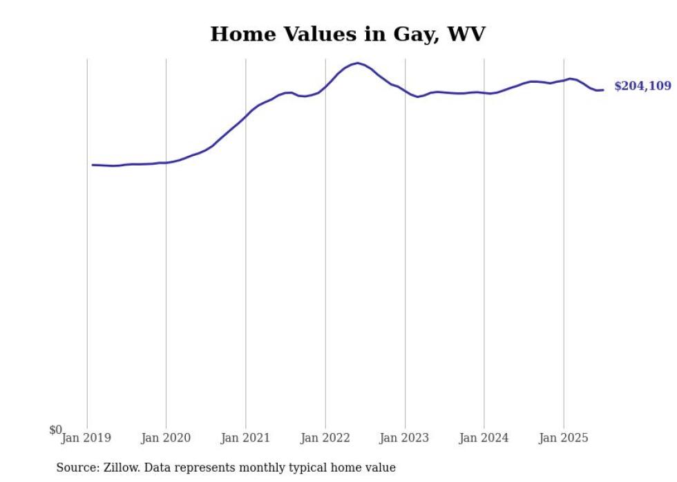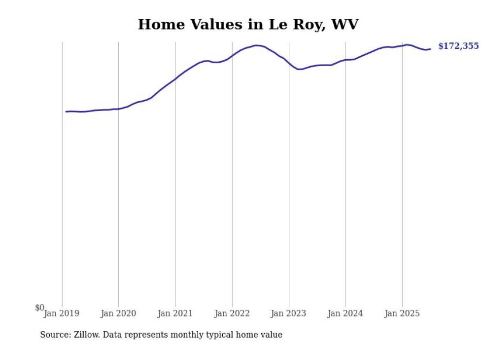 Stacker compiled a list of cities with the most expensive homes in the Charleston, West Virginia metro area using data from Zillow. Charts show the monthly typical home value since January 2018. Data was available for 51 cities and towns.