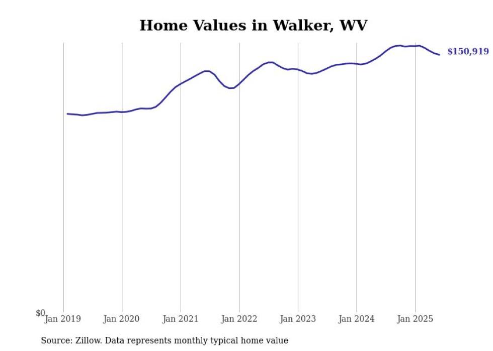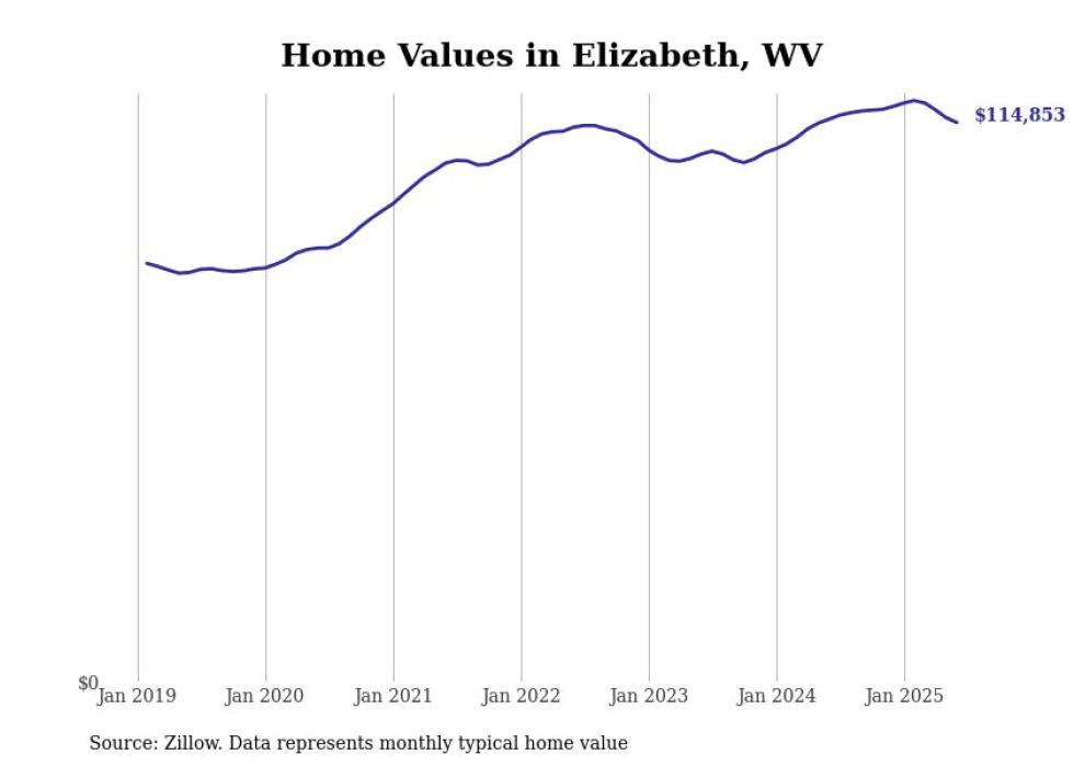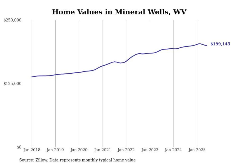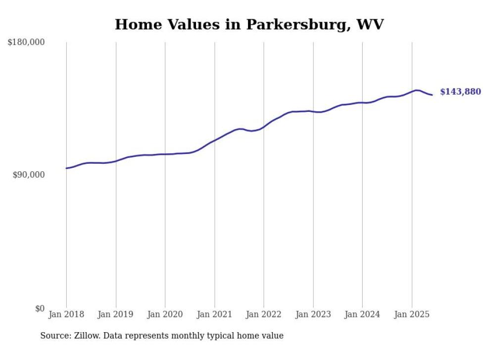 Stacker compiled a list of cities with the most expensive homes in the Parkersburg-Vienna, WV metro area using data from Zillow. Charts show the monthly typical home value since January 2018.