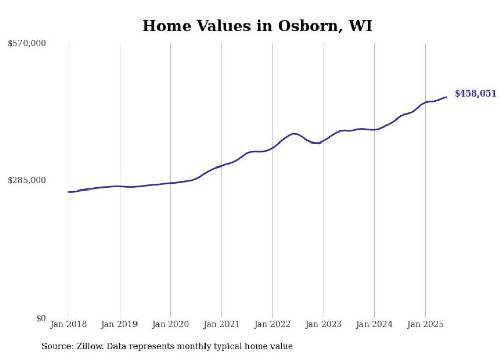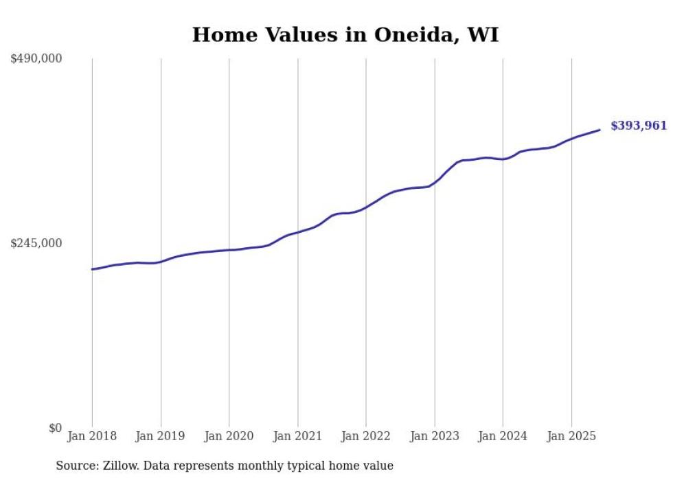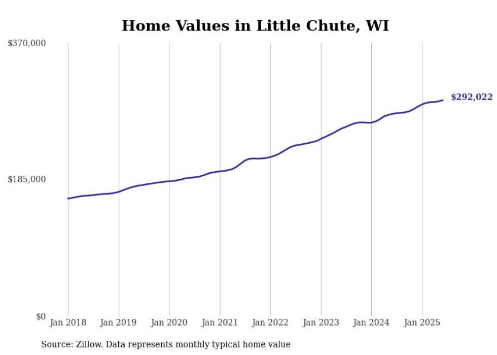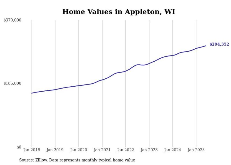Stacker compiled a list of cities with the most expensive homes in the Appleton, WI metro area using data from Zillow. Charts show the monthly typical home value since January 2018.