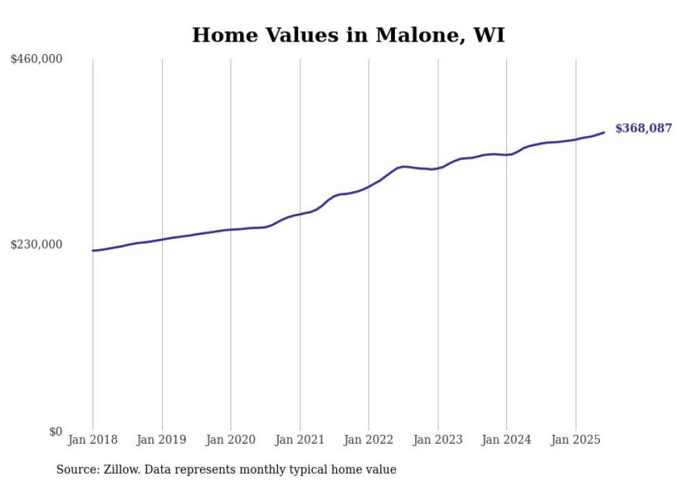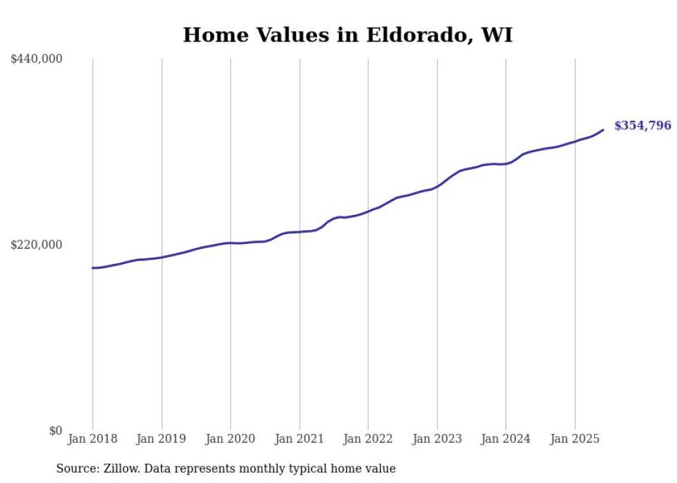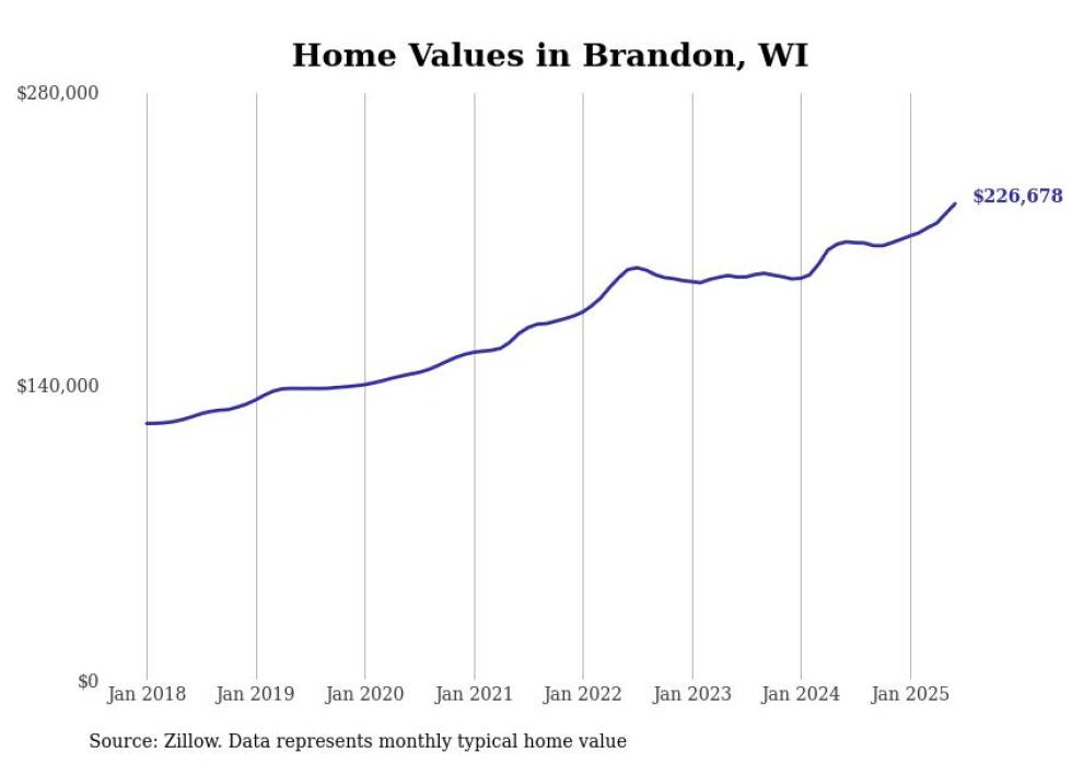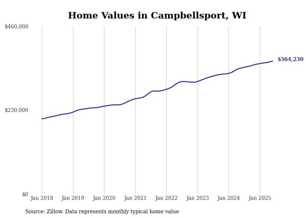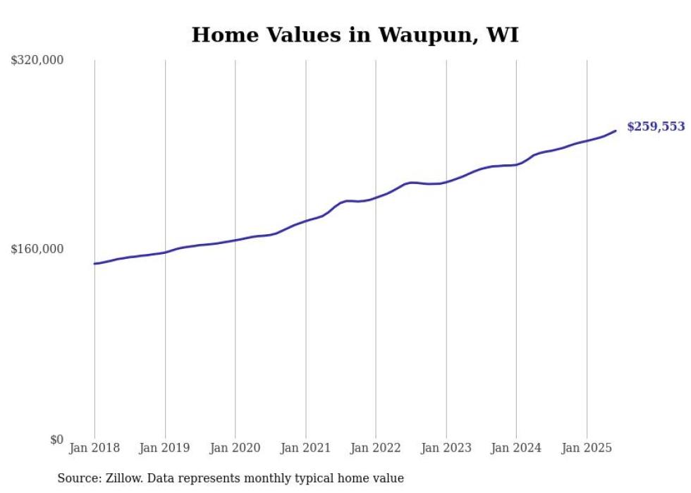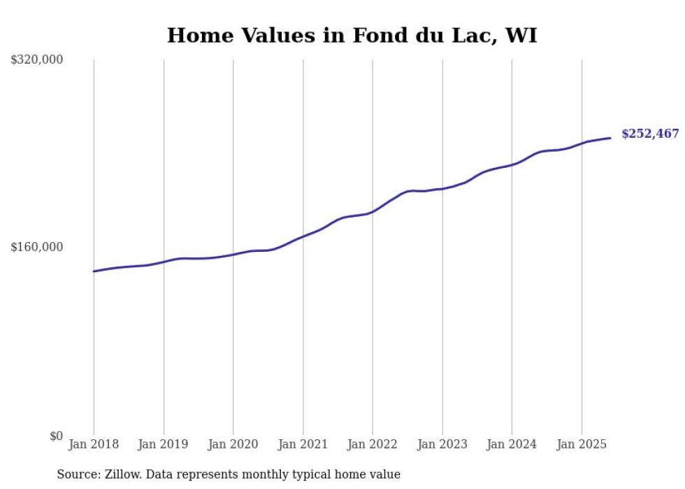 Stacker compiled a list of cities with the most expensive homes in the Fond du Lac, WI metro area using data from Zillow. Charts show the monthly typical home value since January 2018.
