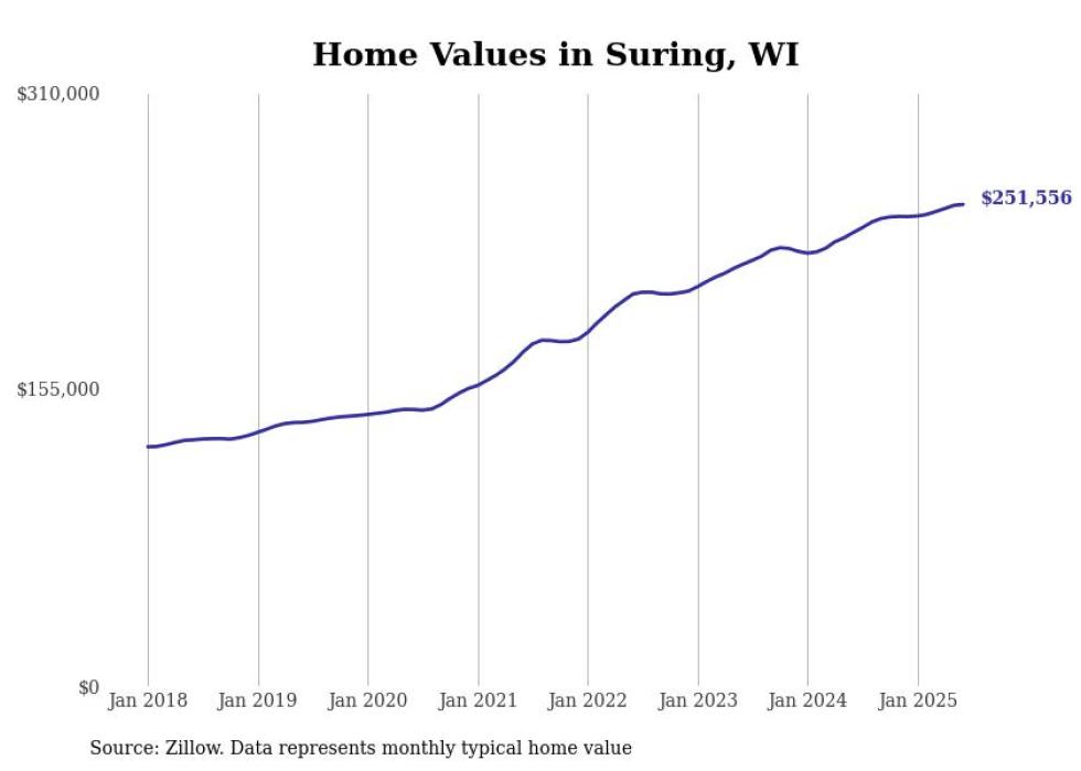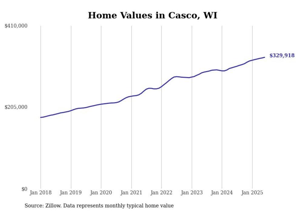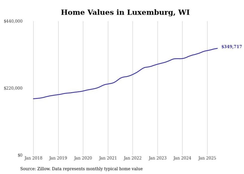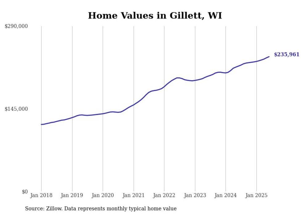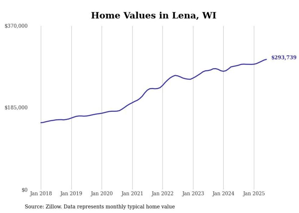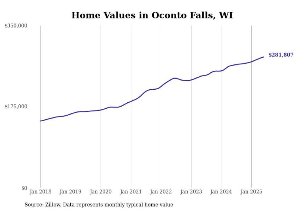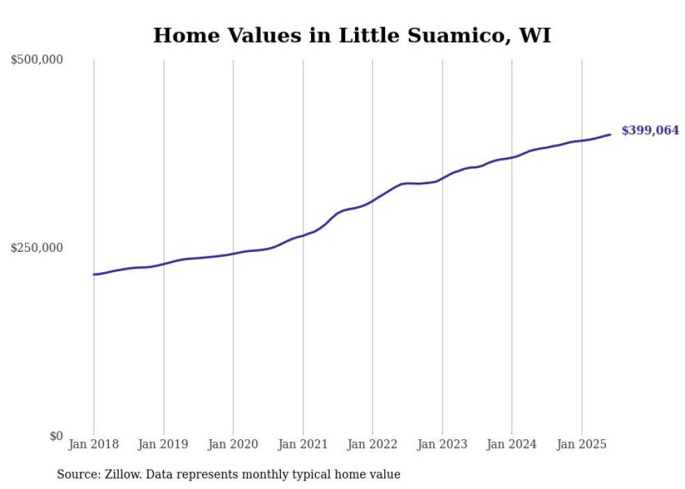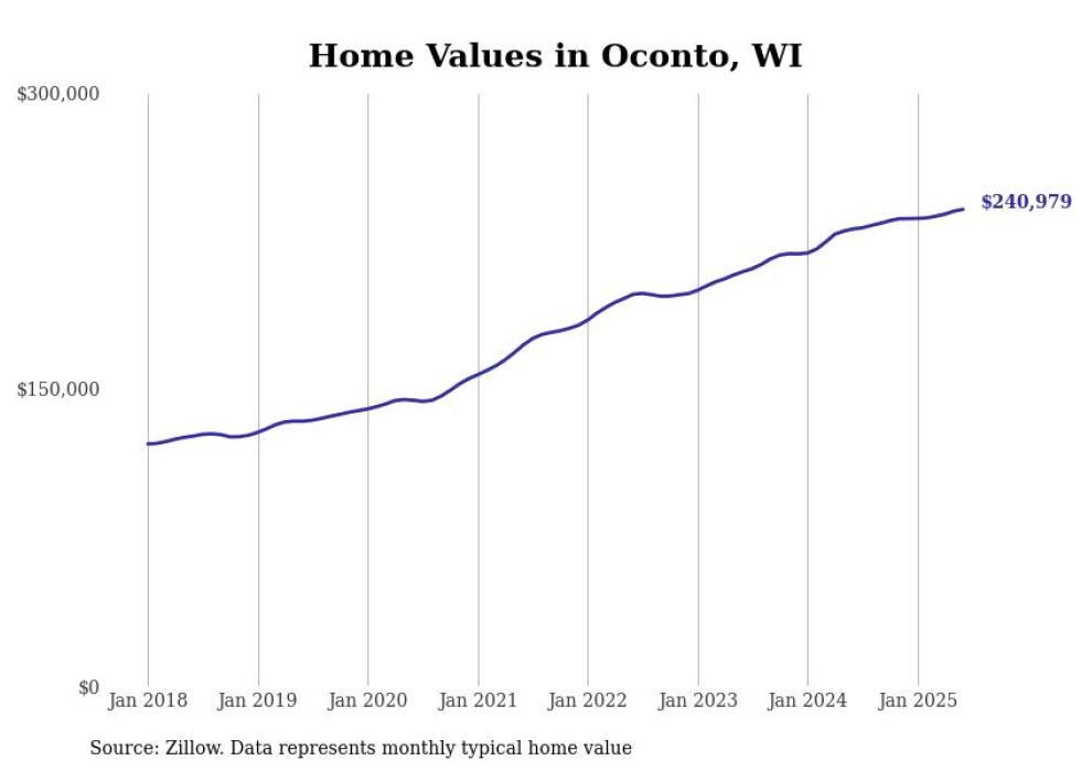 Stacker compiled a list of cities with the most expensive homes in the Green Bay, WI metro area using data from Zillow. Charts show the monthly typical home value since January 2018.