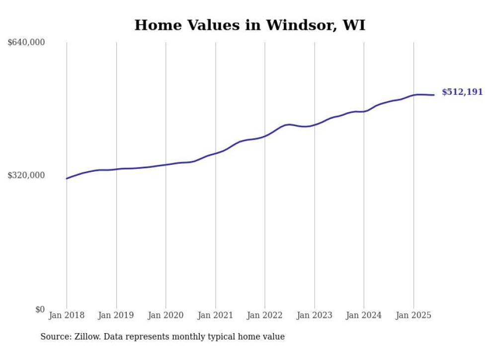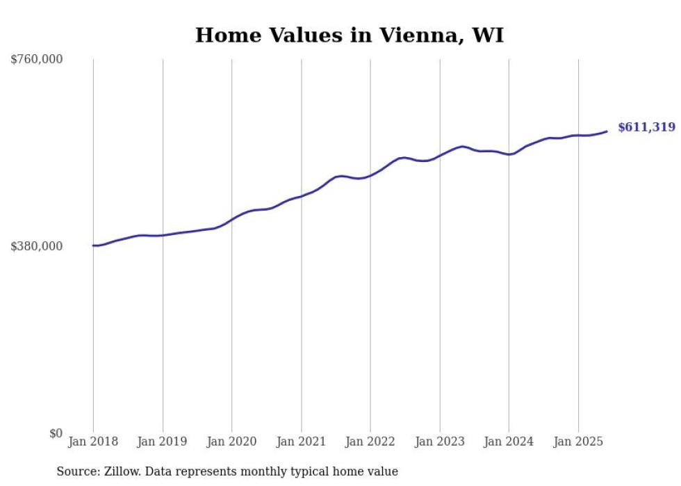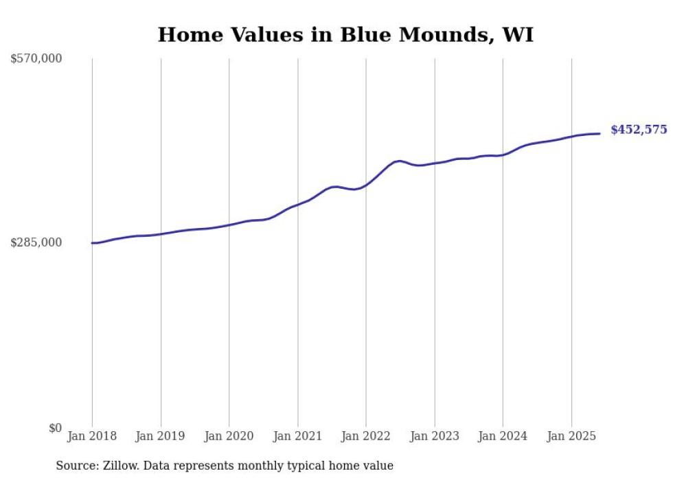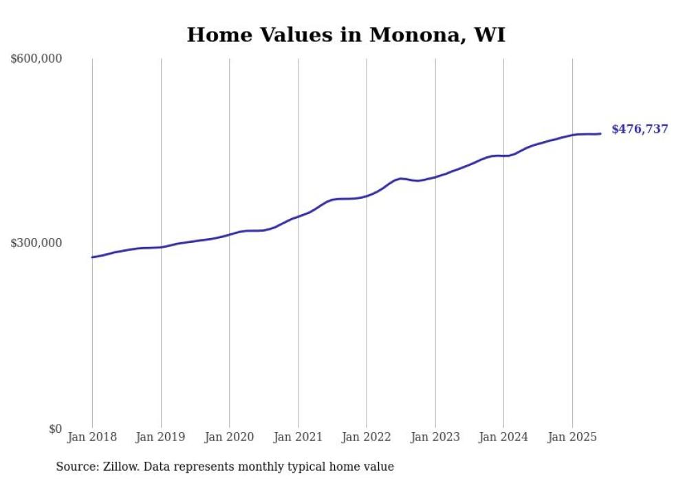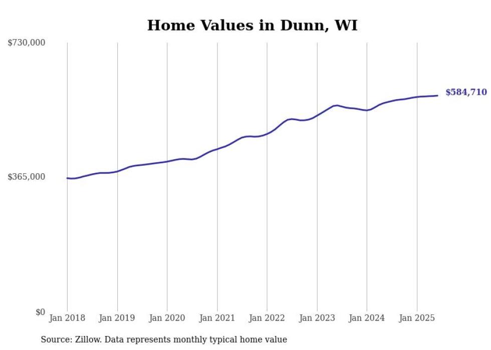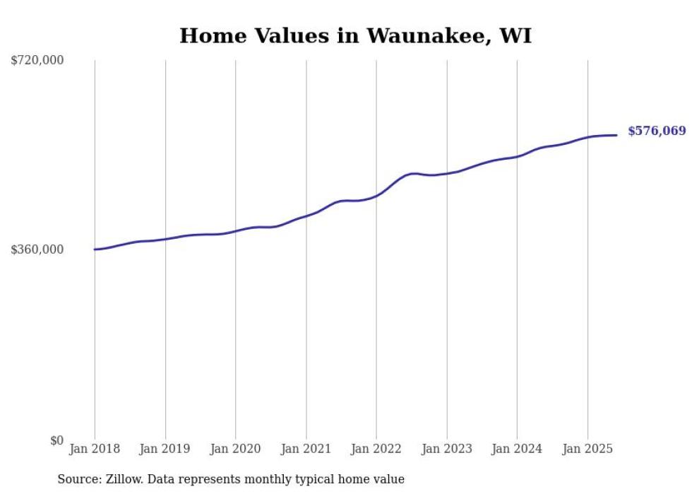 Stacker compiled a list of cities with the most expensive homes in the Madison, WI metro area using data from Zillow. Charts show the monthly typical home value since January 2018.