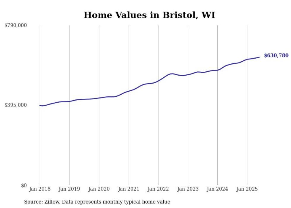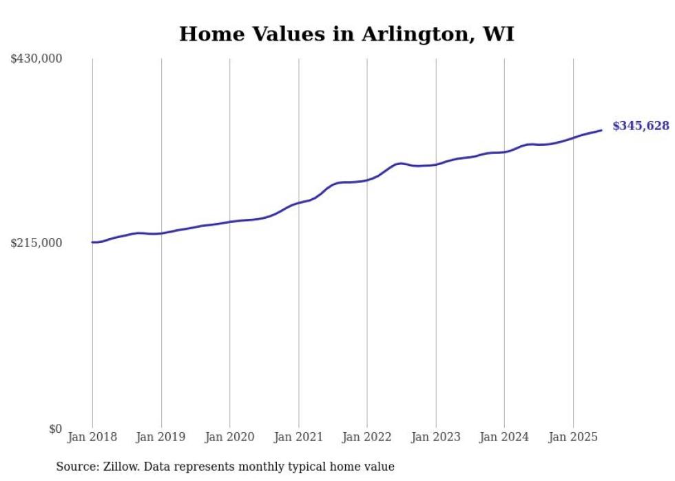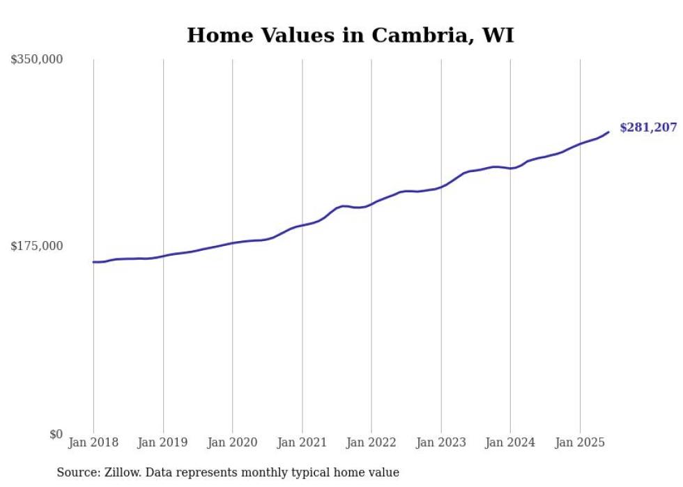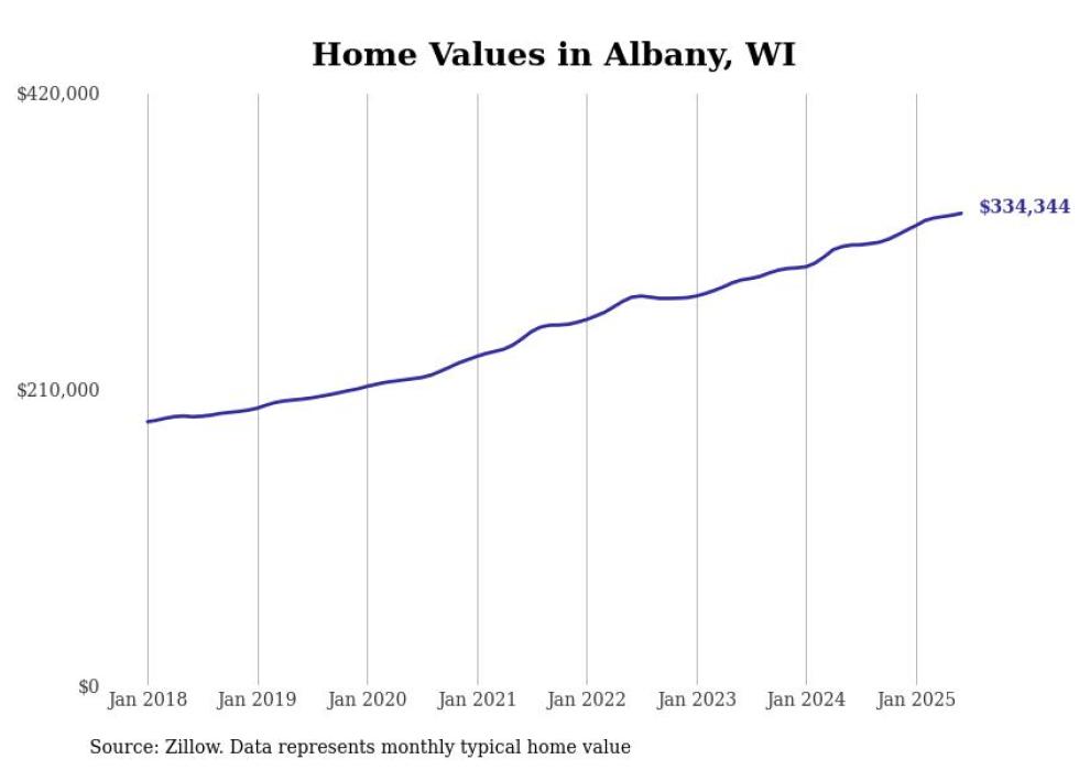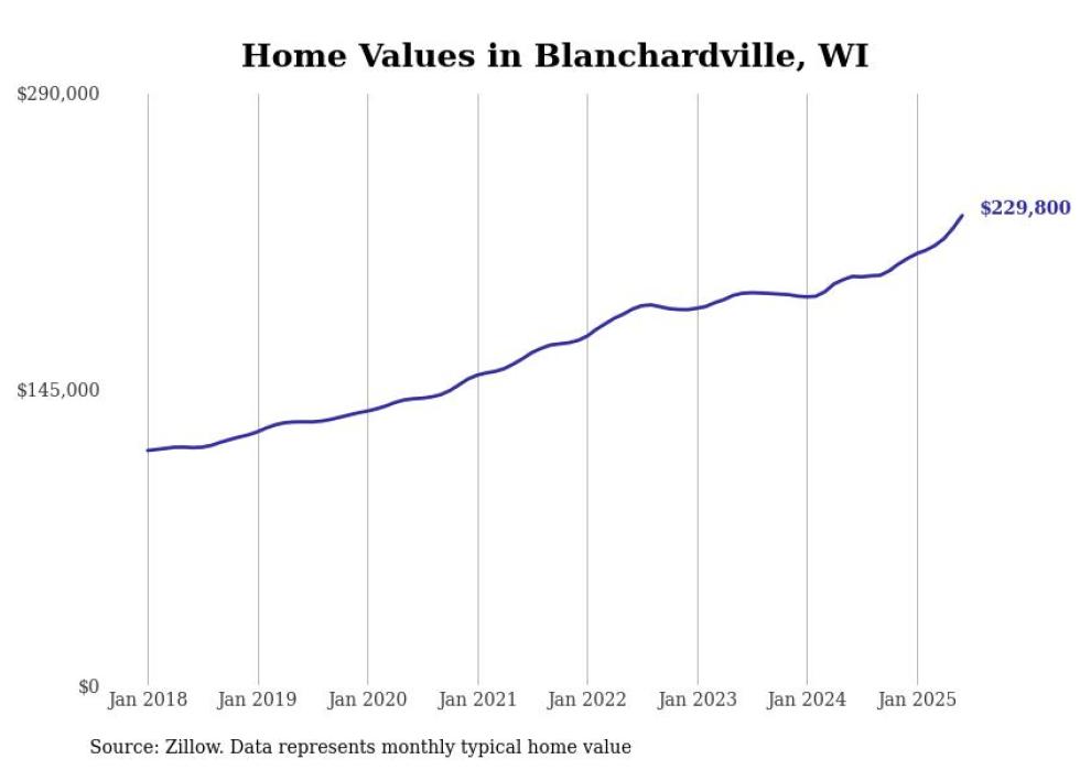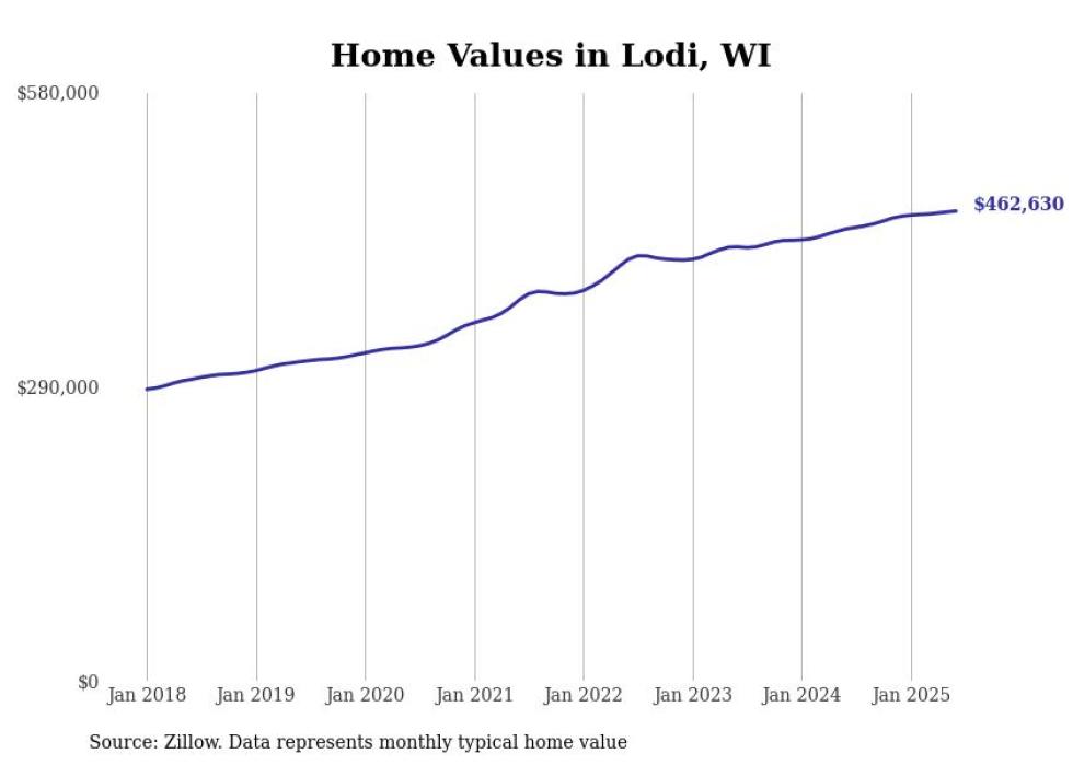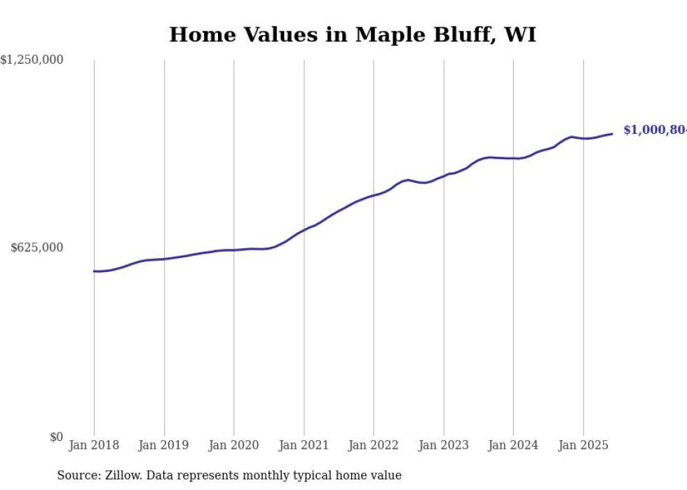 Stacker compiled a list of cities with the most expensive homes in the Madison, WI metro area using data from Zillow. Charts show the monthly typical home value since January 2018.