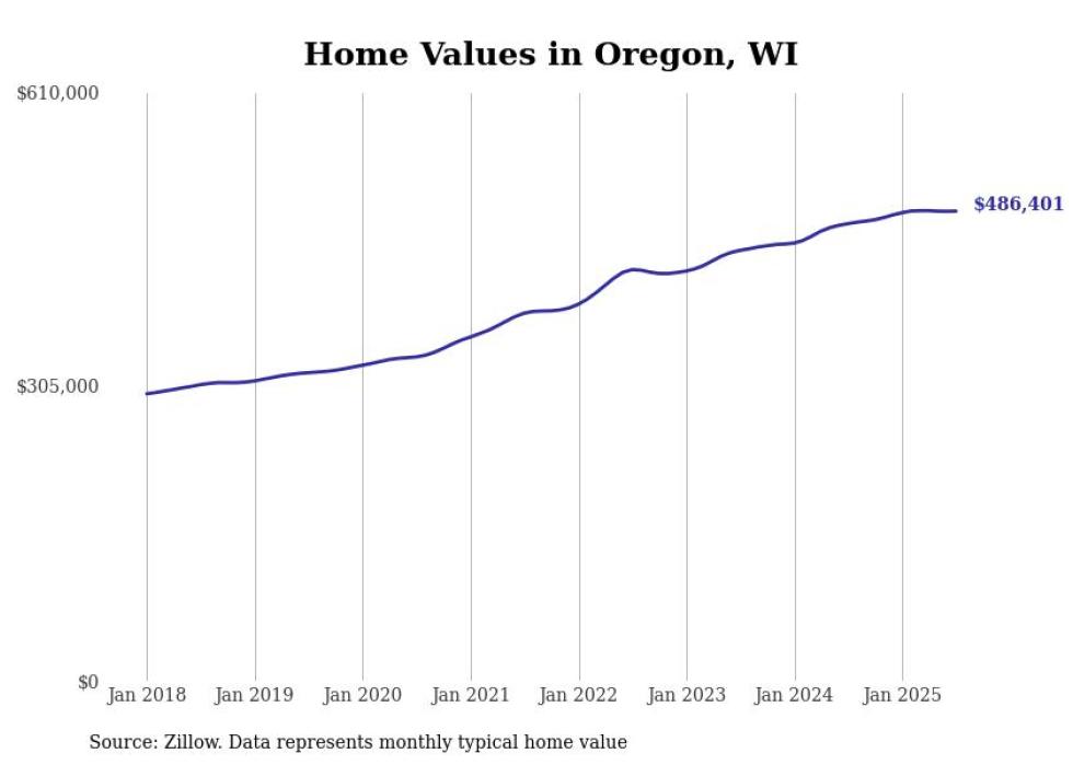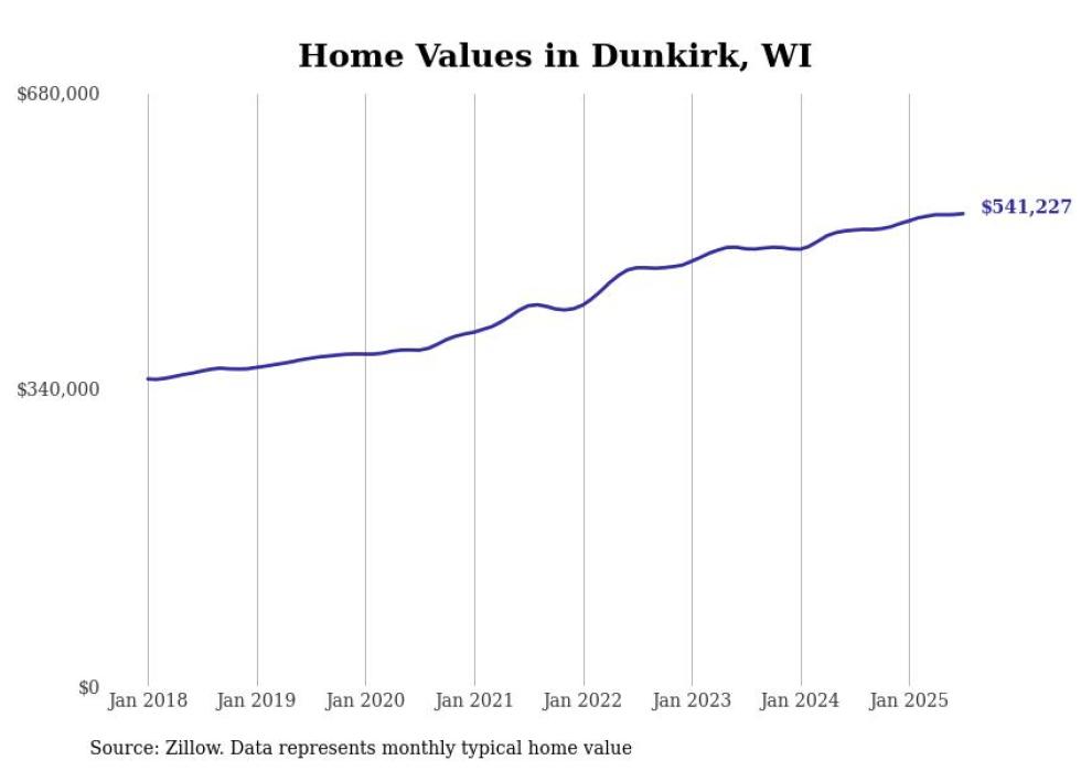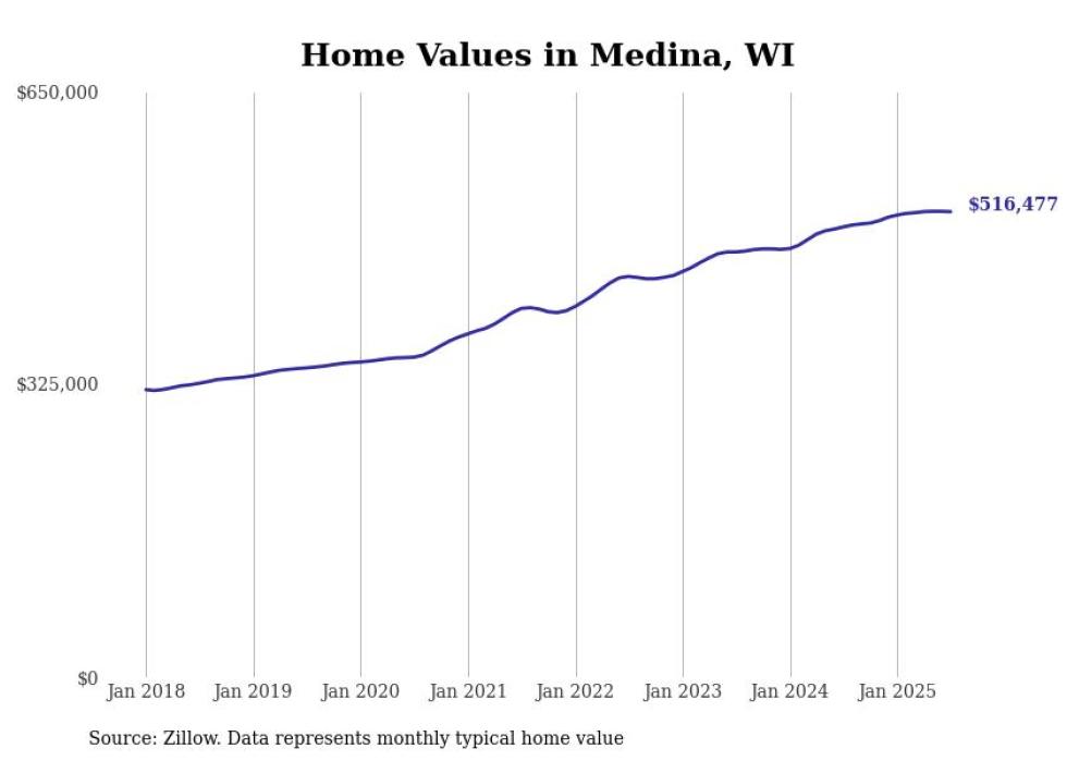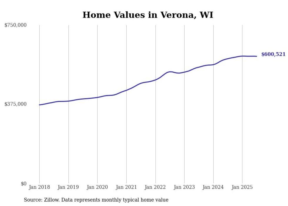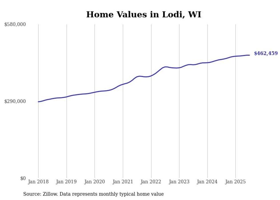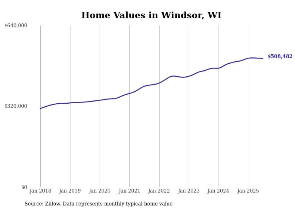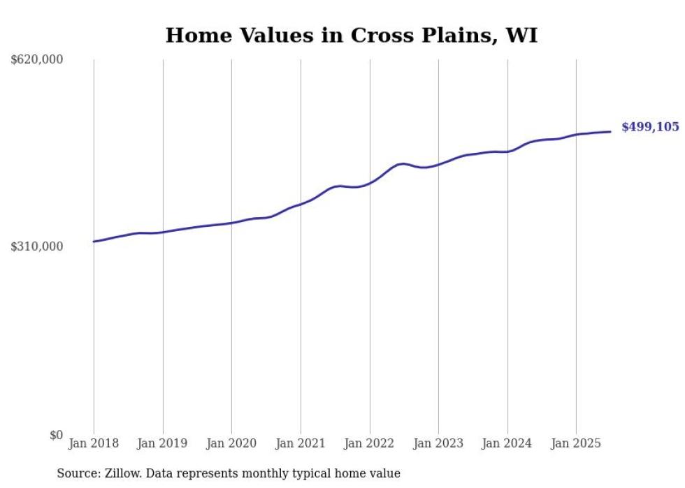 Stacker compiled a list of cities with the most expensive homes in the Madison metro area using data from Zillow. Charts show the monthly typical home value since January 2018. Data was available for 58 cities and towns.