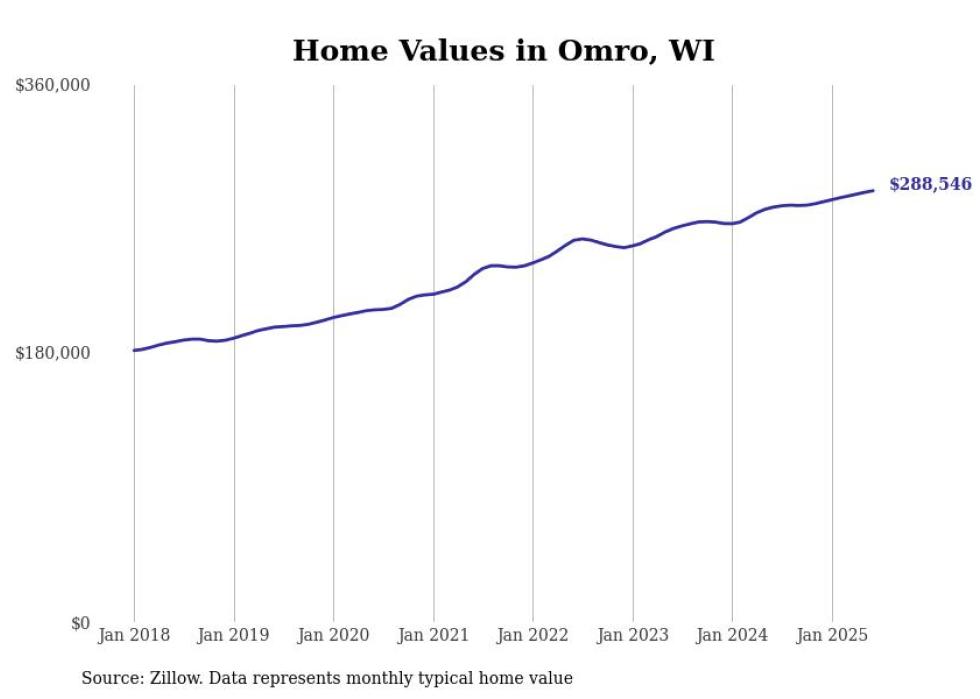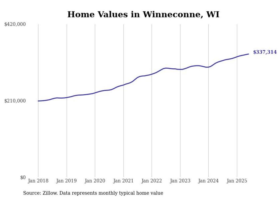Cities with the fastest-growing home prices in the Oshkosh metro area