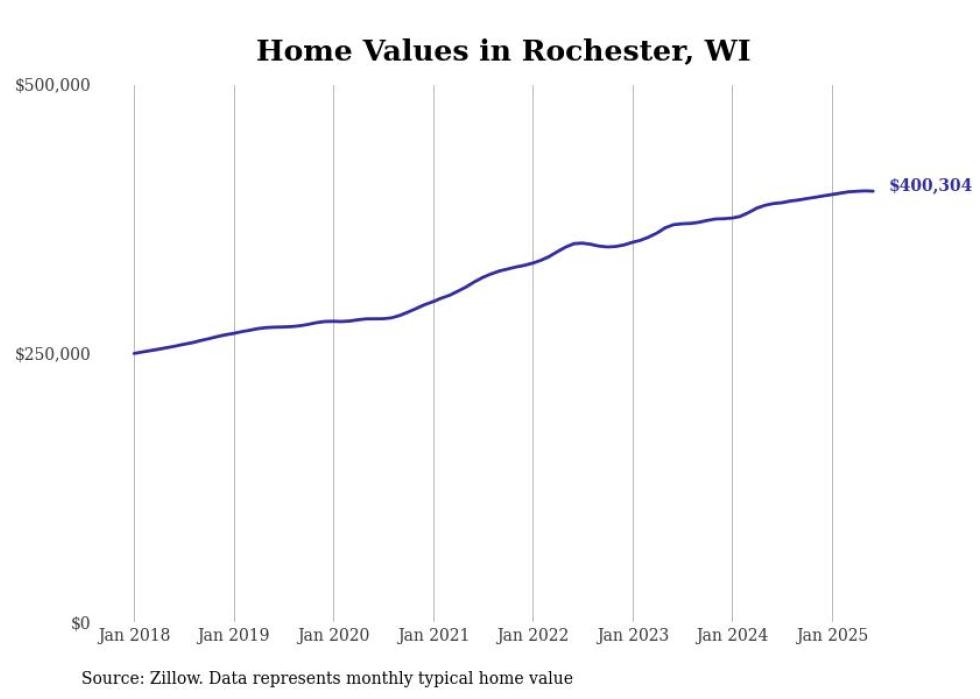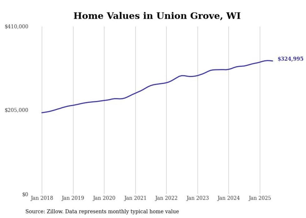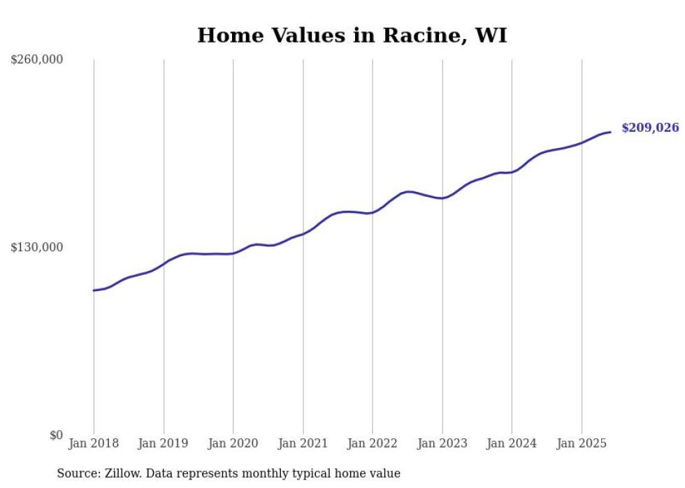 Stacker compiled a list of cities with the most expensive homes in the Racine, WI metro area using data from Zillow. Charts show the monthly typical home value since January 2018.