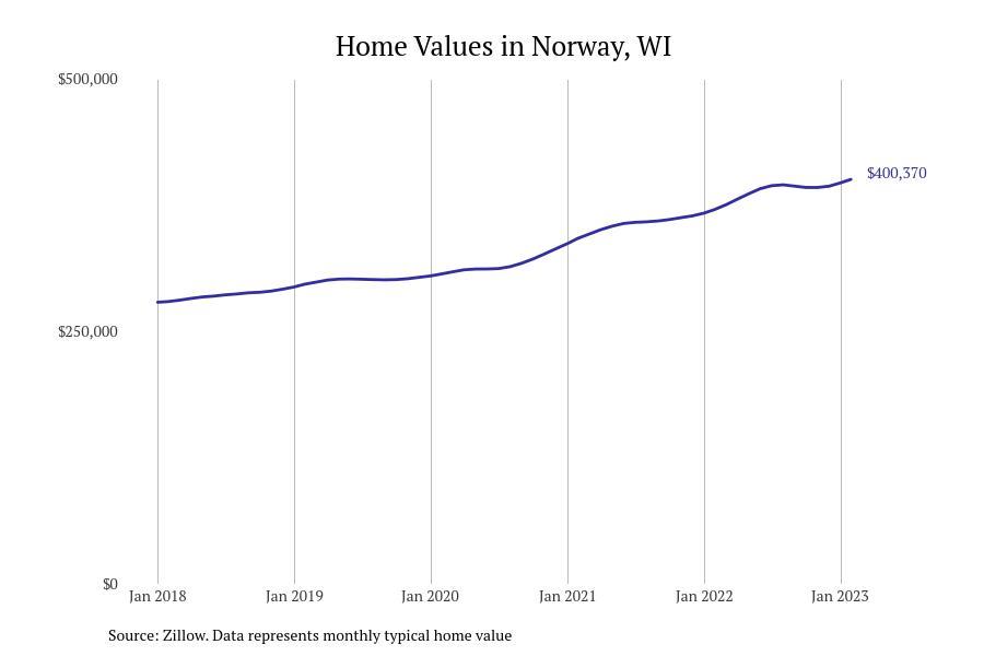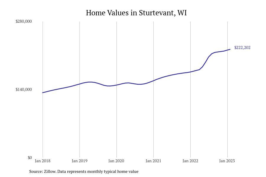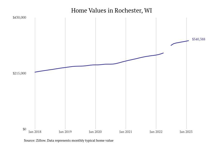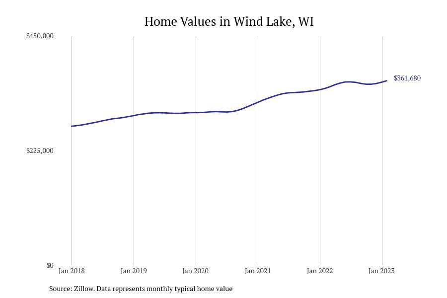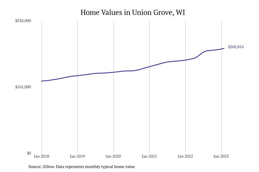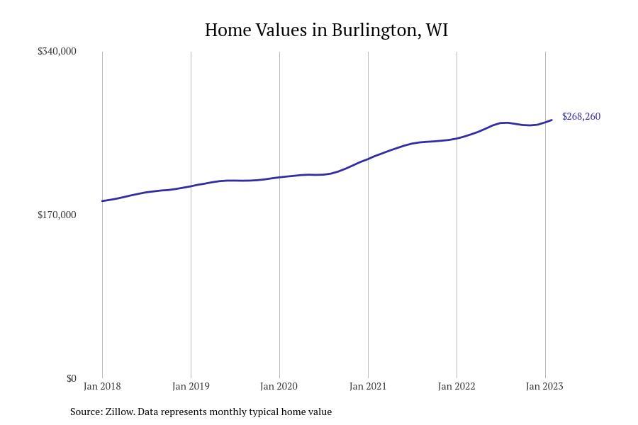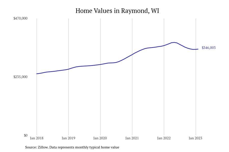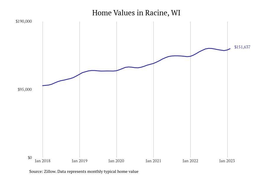 Stacker compiled a list of cities with the most expensive homes in Racine using data from Zillow. Cities are ranked by the Zillow Home Values Index for all homes as of February 2023. The ZVHI represents a seasonally adjusted price for the middle market for all homes. All 15 cities and towns with data available were included in the list. Charts for each city show the monthly typical home value since January 2018.
