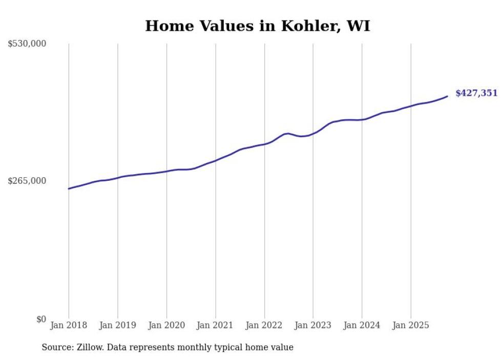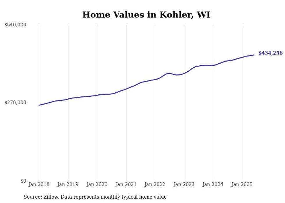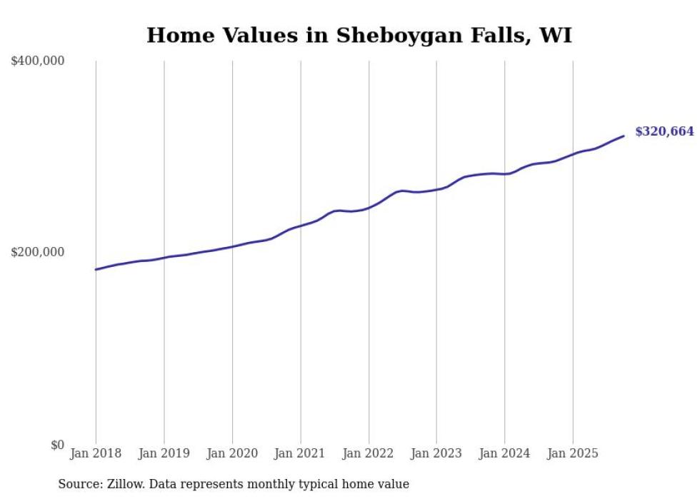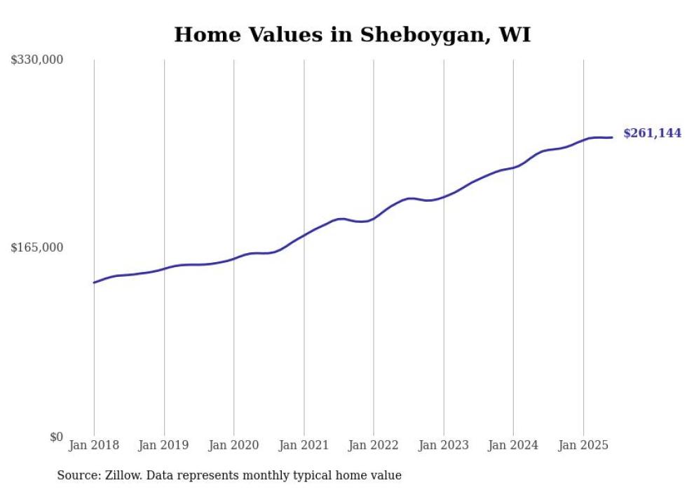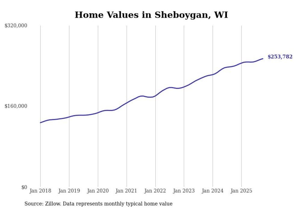 Stacker compiled a list of cities with the most expensive homes in the Sheboygan, WI metro area using data from Zillow. Charts show the monthly typical home value since January 2018.