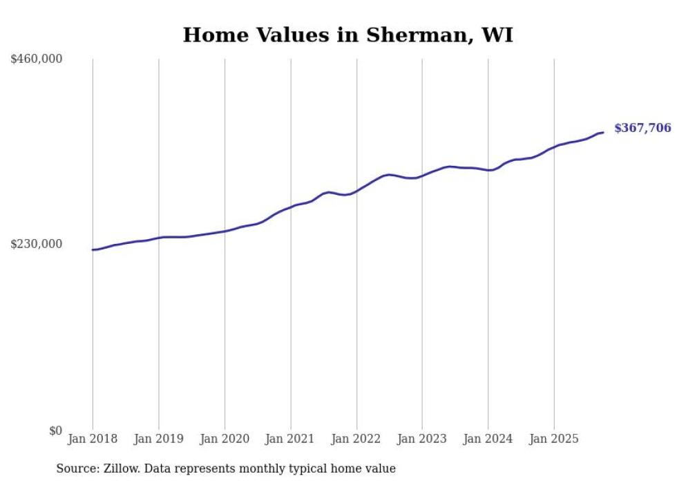 Cities with the fastest-growing home prices in the Sheboygan metro area