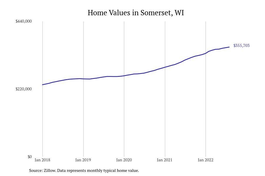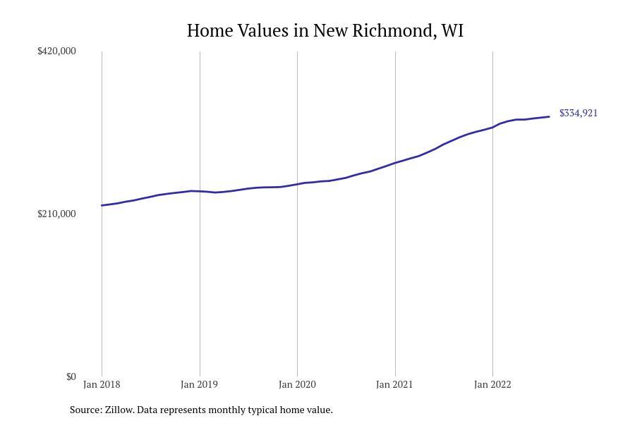 Stacker compiled a list of places with the most expensive homes in Saint Croix County, WI using data from Zillow. Places are ranked by the Zillow Home Values Index for all homes as of August 2022. The ZVHI represents a seasonally adjusted price for the middle market for all homes. All 12 cities and towns with data available were included in the list. Charts for each place show the monthly typical home value since January 2018.