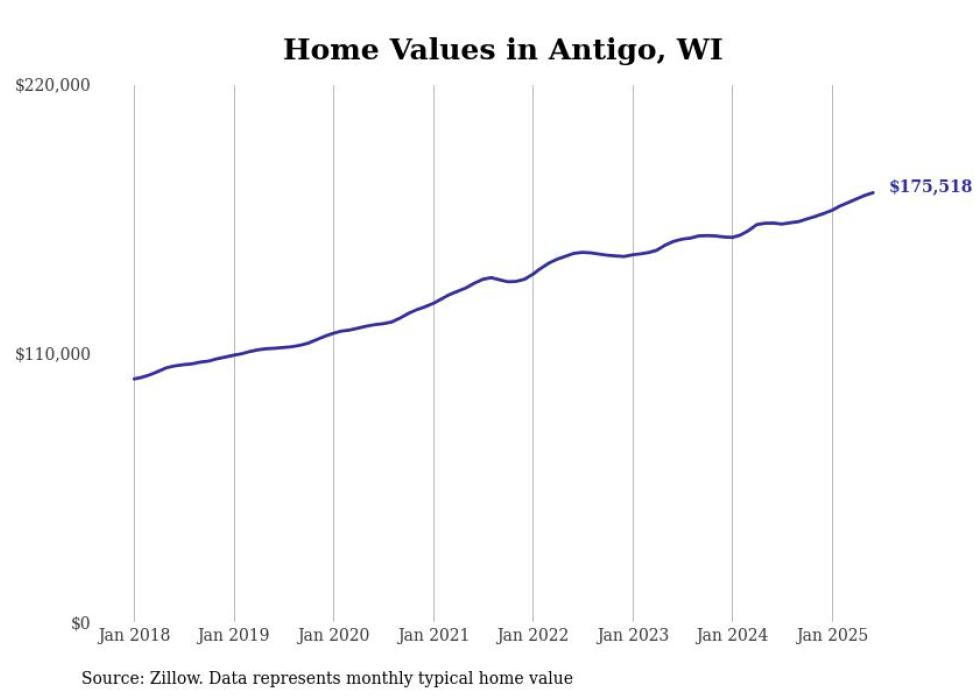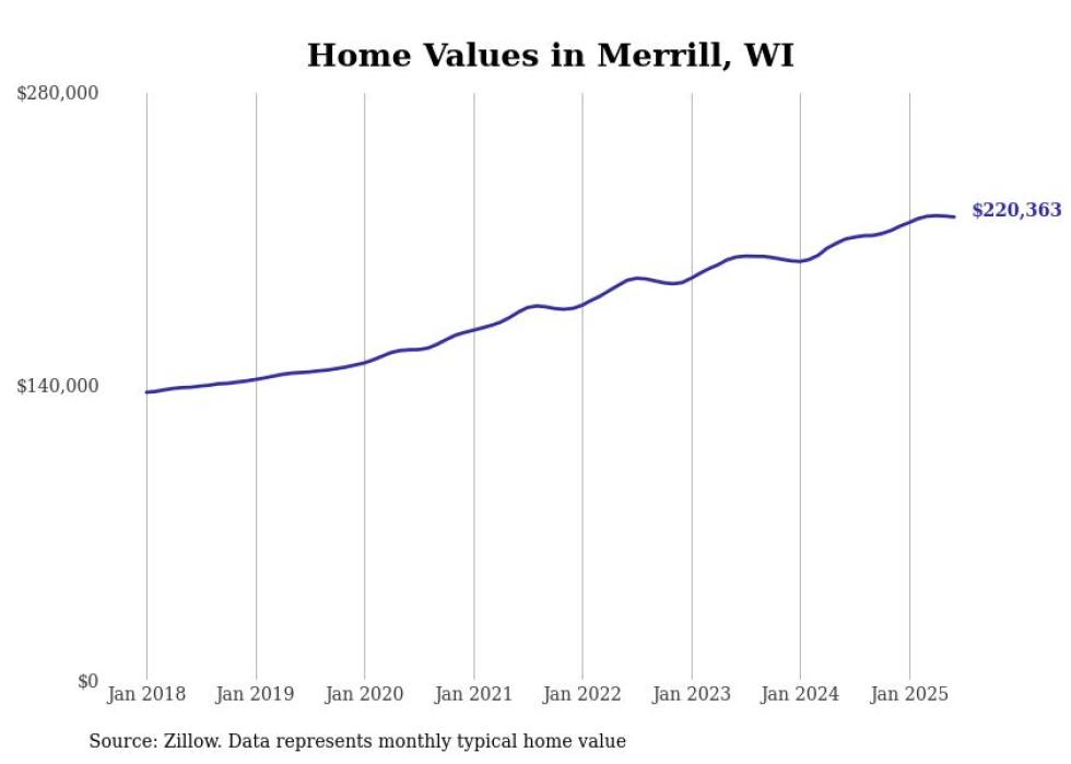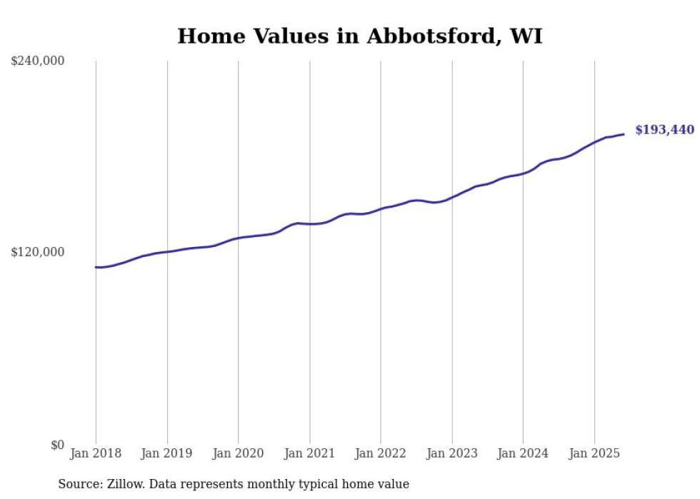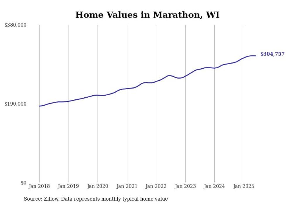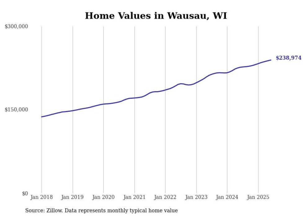 Stacker compiled a list of cities with the most expensive homes in the Wausau-Weston, WI metro area using data from Zillow. Charts show the monthly typical home value since January 2018.