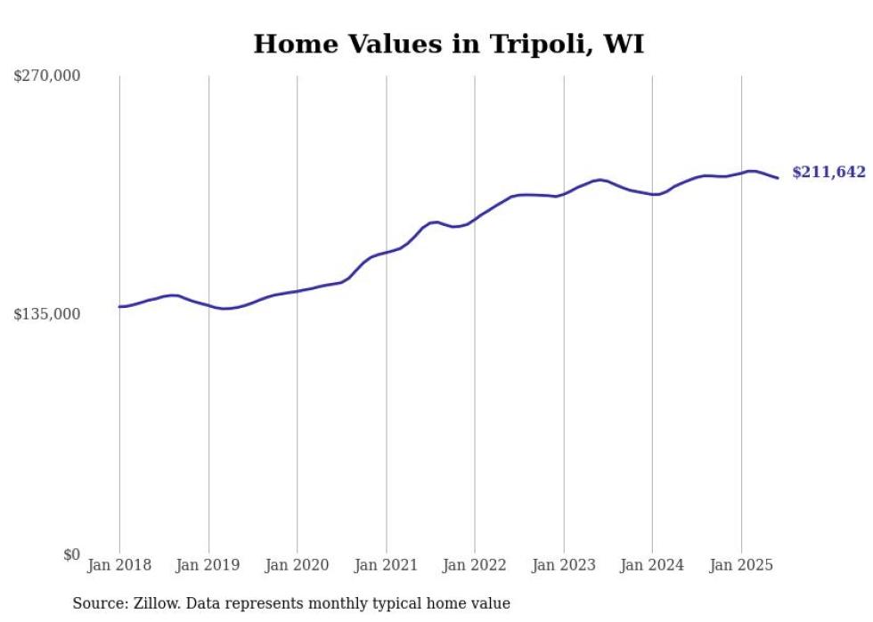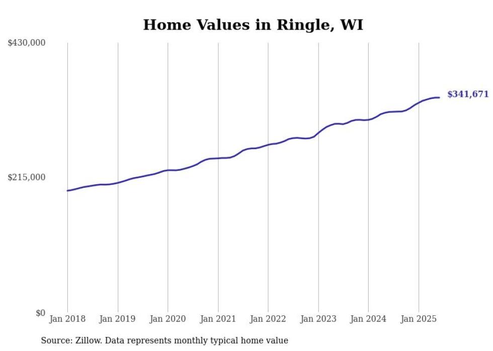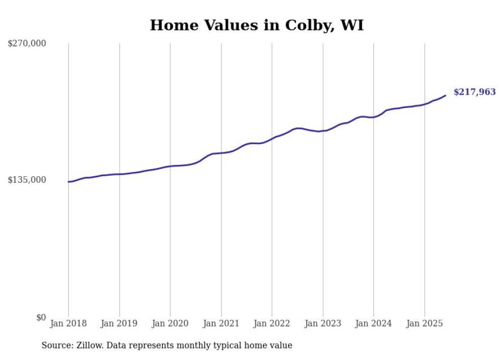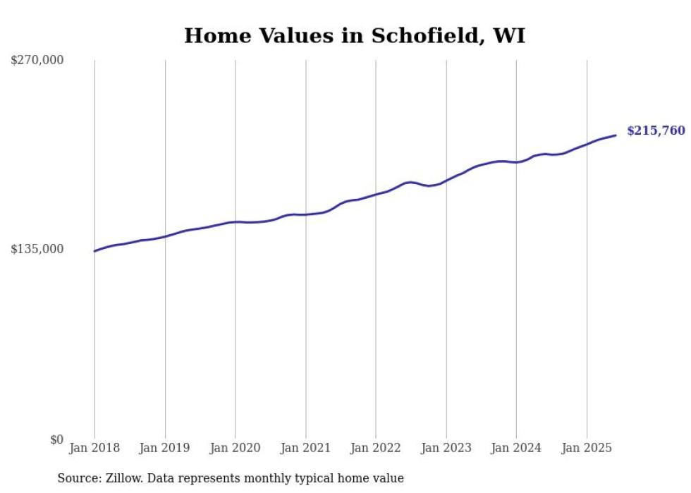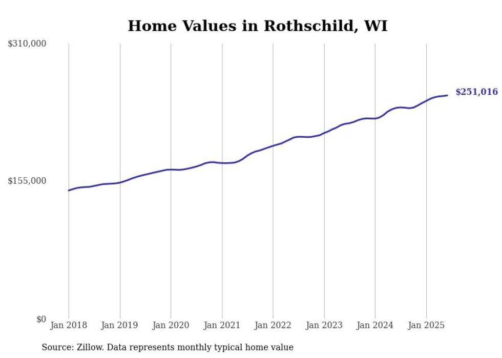 Stacker compiled a list of cities with the most expensive homes in the Wausau-Weston, WI metro area using data from Zillow. Charts show the monthly typical home value since January 2018.
