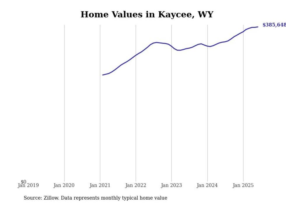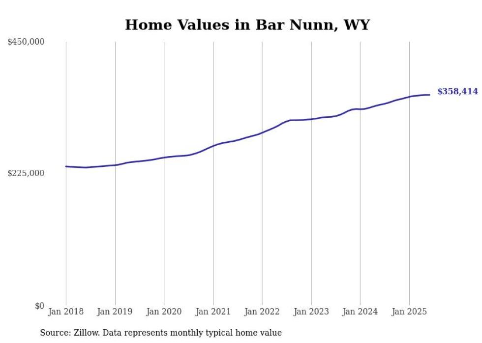 Stacker compiled a list of cities with the most expensive homes in the Casper, WY metro area using data from Zillow. Charts show the monthly typical home value since January 2018.
