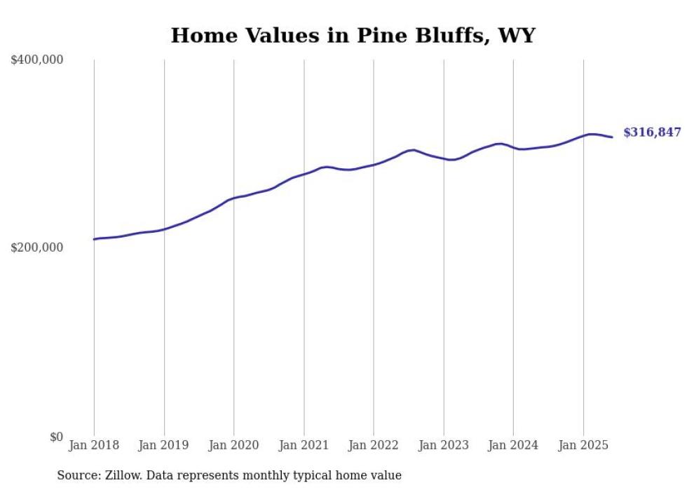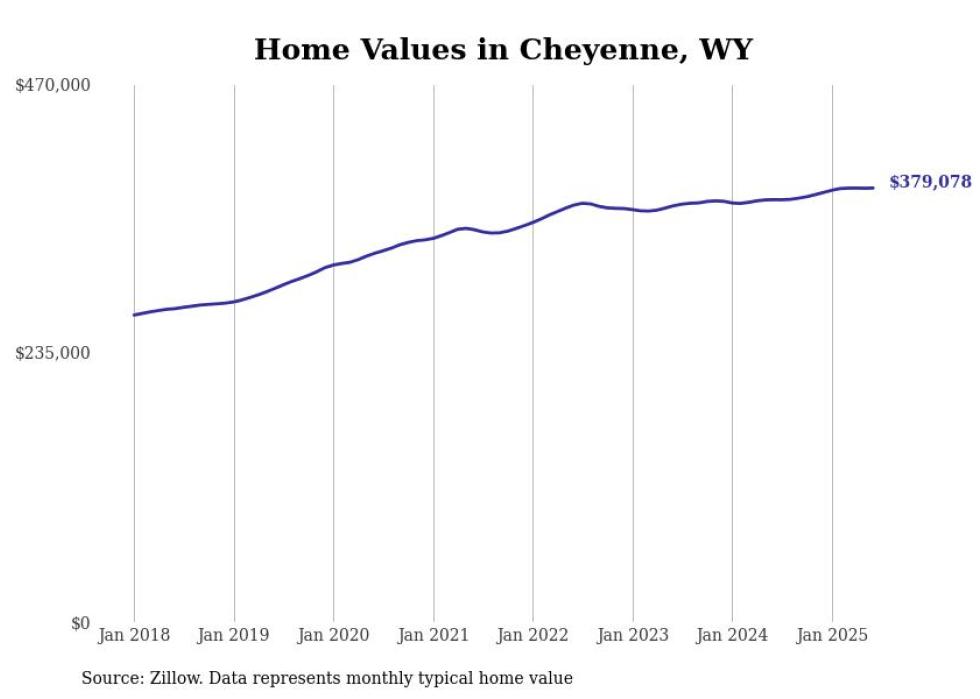 Stacker compiled a list of cities with the most expensive homes in the Cheyenne, WY metro area using data from Zillow. Charts show the monthly typical home value since January 2018.